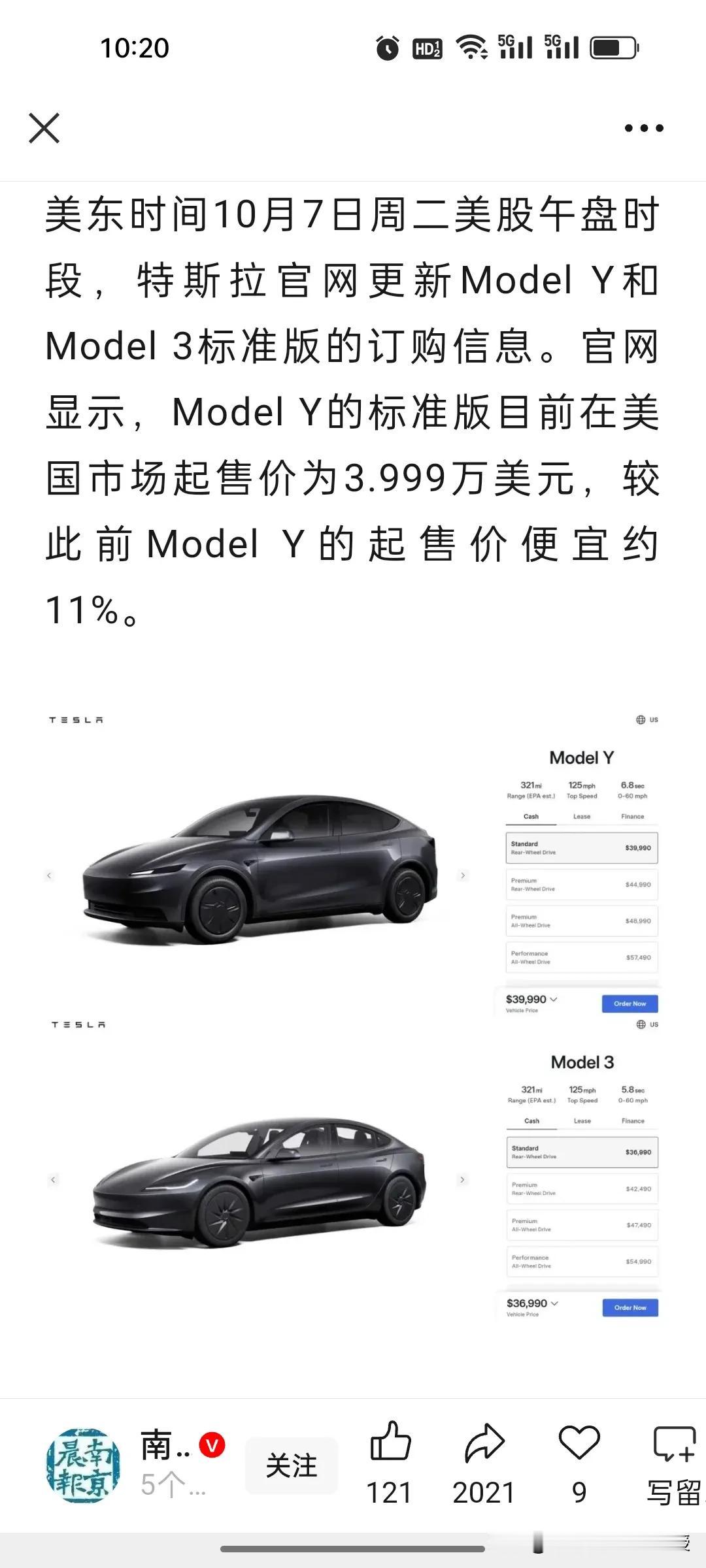 刚刚,特斯拉降价了!一夜之间市值蒸发4600亿!原来特斯拉也开始卷了,宣布将车型Model Y的标准版售价降到了3.99万美元,降幅11%,为了应对政府税收抵免结束。 此轮降价,最直接的影响就是其利润,11%的降幅会直接压缩单车毛利率,这也是市场担忧并导致其市值蒸发的核心原因。 很多有意向的购车者在此轮降价后可能会选择继续观望,看看特斯拉以及其他竞争品牌会不会继续降价,这也间接迫使竞争对手跟进降价,最终会加剧整个市场的内卷烈度。