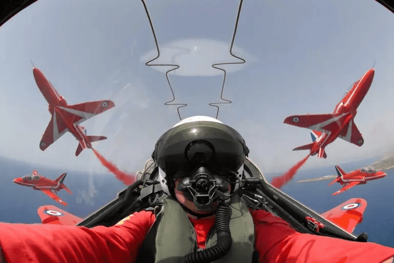 休斯是“红箭”飞行表演队的九名飞行员之一,而每位队员都需要在英国皇家空军拥有至少1500小时的飞行经验才能被视为杰出飞行员。