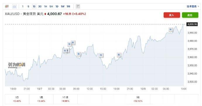 现货黄金突破4000美元创历史新高,白银逼近48美元