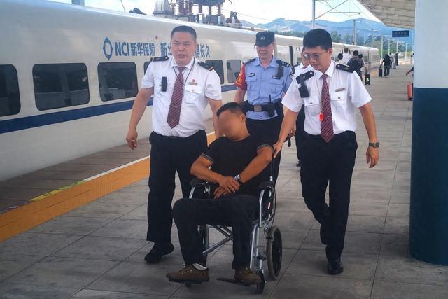 当日时间13时45分,由梧州开往广州南的D3623次列车即将抵达云浮东站时,列车工作人员紧急联系车站,告知车上一名旅客突发肾结石,疼痛难忍需立即就医。接到求助信息后,云浮东站民警第一时间和车站工作人员赶往站台待命。列车到站停稳,民警迅速登车找到患病旅客,一边安抚其情绪、协助服用应急药物缓解疼痛,一边协调车站工作人员开辟绿色通道,联系120急救人员到场。在与医护人员交接时,他详细说明旅客情况,确保后续救治衔接顺畅。最终,患病旅客被顺利送往医院接受进一步治疗,患病旅客对民警和车站工作人员的及时救助表达了衷心感谢。