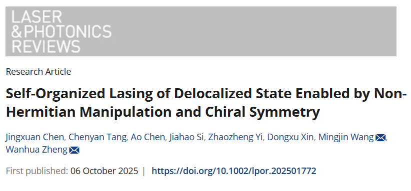 这一方案不仅丰富了拓扑激光器的技术路径,更呼应了拓扑光子学向集成光子芯片、高性能光发射器件渗透的发展趋势,进一步推动了拓扑物理在光子领域的技术落地。该成果以“Self-organizedlasingofdelocalizedstateenabledbynon-Hermitianmanipulationandchiralsymmetry”为题,发表于《激光与光子学评论》(Laser&PhotonicsReviews,DOI:10.1002/lpor.202501772)。中国科学院半导体研究所博士后陈静瑄与博士生唐臣燕为共同第一作者,青年研究员王明金与郑婉华院士为共同通讯作者。