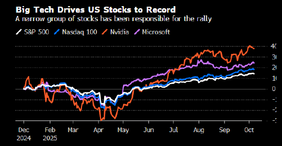随着美国股市的创纪录上涨推高估值,围绕AI泡沫的担忧升温。科技股权重较高的纳斯达克100指数今年上涨18%,预期市盈率为28倍,而其10年平均水平为23倍。