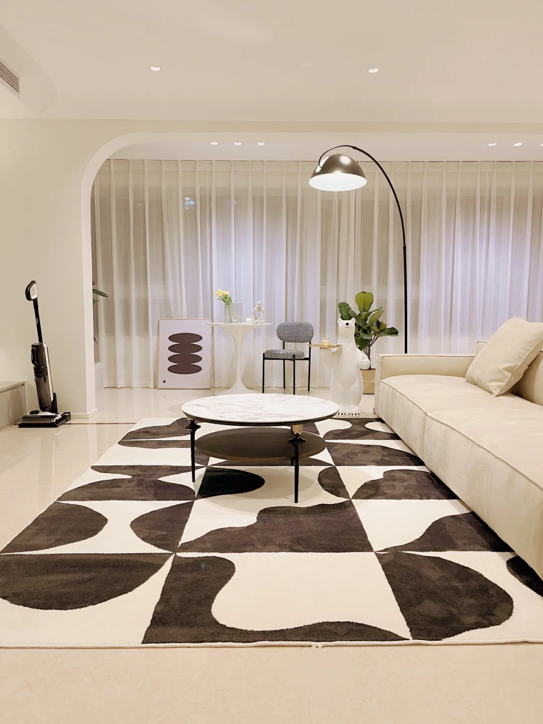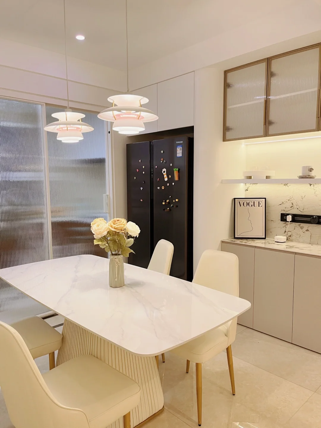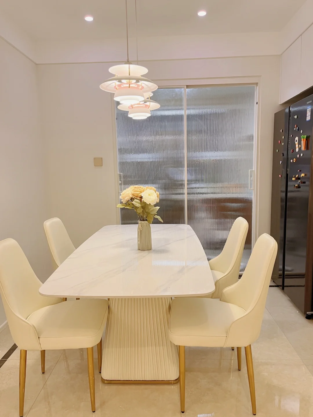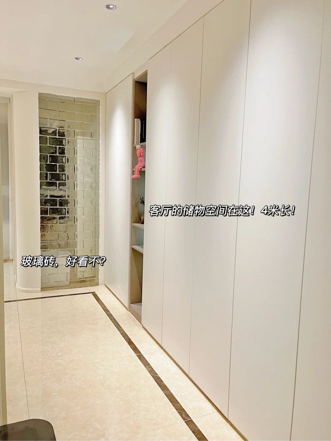 哈喽,宝子们~ 之前有宝子说我家看起来有200平、300平的 其实真的只有120平[微笑R] 🌟硬装阶段也花了一些小心思,让整个家视觉上显大❗️ ✔️无主灯、无吊顶,如果你家层高低就选择无主灯吧,我家不到2.6m,视觉上一点也不压抑 ✔️阳台纳入客厅,现在买房阳台都算全面积了,不包进来实在是太亏了吧[笑哭R] 至于包进客厅怎么晾衣服的问题,我家单独做了洗衣房,感兴趣的可看我其他笔记! ✔️客厅收纳:客厅其实藏了一整排储物柜哦!图4⃣️就是! ✔️地砖通铺,别整门槛石,直接铺到阳台,简单大气! ✔️全屋浅色系,从墙面到软装,都选择的奶油系,光线好又温柔。这次地毯大胆滴跳了个色,感觉又像换了一个家[微笑R] 还有宝问我全屋浅色系,卫生一定很难打扫吧[笑哭R] 其实浅色系真的不显脏哦,晚上拿着洗地机轻松走一遍,吸尘同时又能拖地,每天花个十五分钟,家里基本就能保持闪闪发亮! ✔️餐边柜好久没出镜了,木工打的柜体、定制的柜门,转角处还特意做成了弧形,有娃家庭可以借鉴!旁边的餐桌最近也刚换成了白色系,整体风格和我家更搭,岩板材质也比之前的更好清理! 💛其实我家客厅还有很多设计小心机,不知道你有没有看出来呢[斜眼R]欢迎评论区回复我哦!