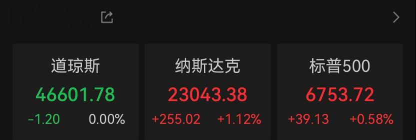 Wind数据显示,当地时间10月8日,美股三大股指涨跌不一。截至收盘,道指微跌,报46601.78点;标普500指数涨0.58%报6753.72点,纳指涨1.12%报23043.38点。其中,标普500指数、纳指创收盘新高。
