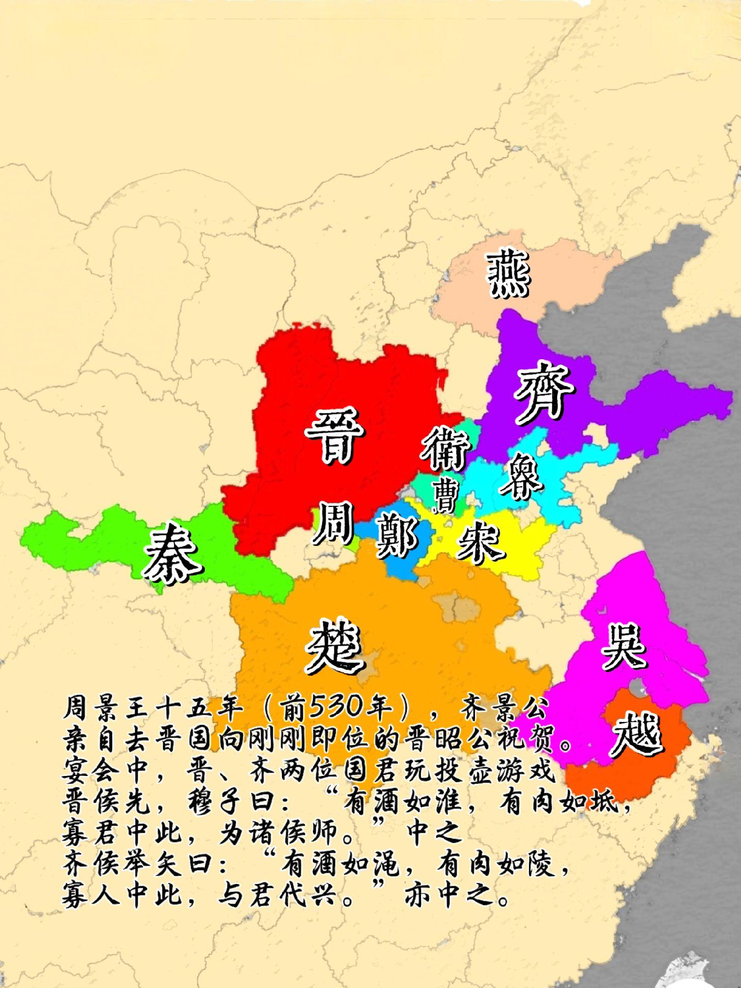 此时天下诸侯依旧维持着常规格局——晋楚争霸。晋国、楚国是老牌强国,国力雄厚。前558年,晋悼公病逝,晋国复兴霸业之举随之凋谢,后其正卿中行偃虽然相继打败楚国、齐国,终不能挽回因晋悼公的死而造成的损失。前550年,晋国栾氏发生内
