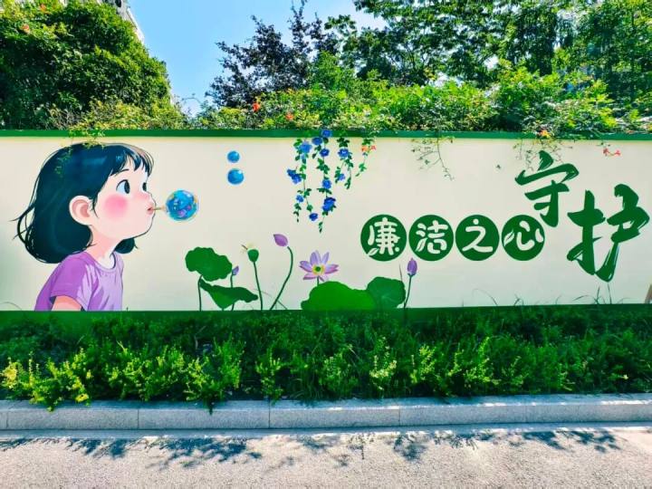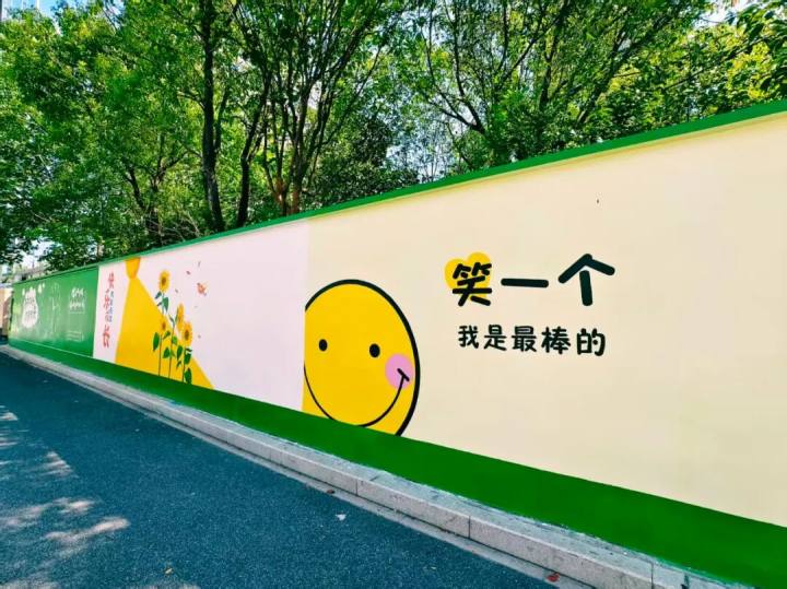 比如,市民提到的钱环支路的180米围挡,几个月前还是斑驳的旧墙面,在城管、街道、学校、社区的合力打造下,如今成了“护苗成长・筑梦未来”主题墙绘。墙绘里藏着诸多巧思:立体橱窗、卡通形象错落有致,“一墙一风景”的氛围感拉满。