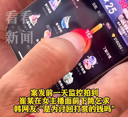然而,案发前一天,监控拍到崔某在女主播面前下跪乞求。警方推测,他因沉迷打赏导致财务崩溃,又未能与对方建立现实关系,心理失衡之下,最终酿成命案。
