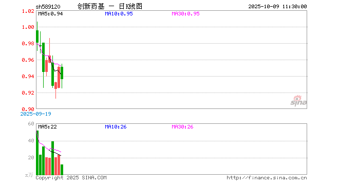 10月9日,截止午间收盘,科创创新药ETF汇添富(589120)跌1.58%,报0.936元,成交额1075.61万元。科创创新药ETF汇添富(589120)重仓股方面,百济神州截止午盘跌0.01%,百利天恒跌2.40%,博瑞医药跌2.79%,君实生物跌0.39%,艾力斯跌2.44%,泽璟制药跌3.99%,荣昌生物跌10.87%,益方生物跌0.80%,特宝生物跌2.96%,迈威生物跌2.24%。