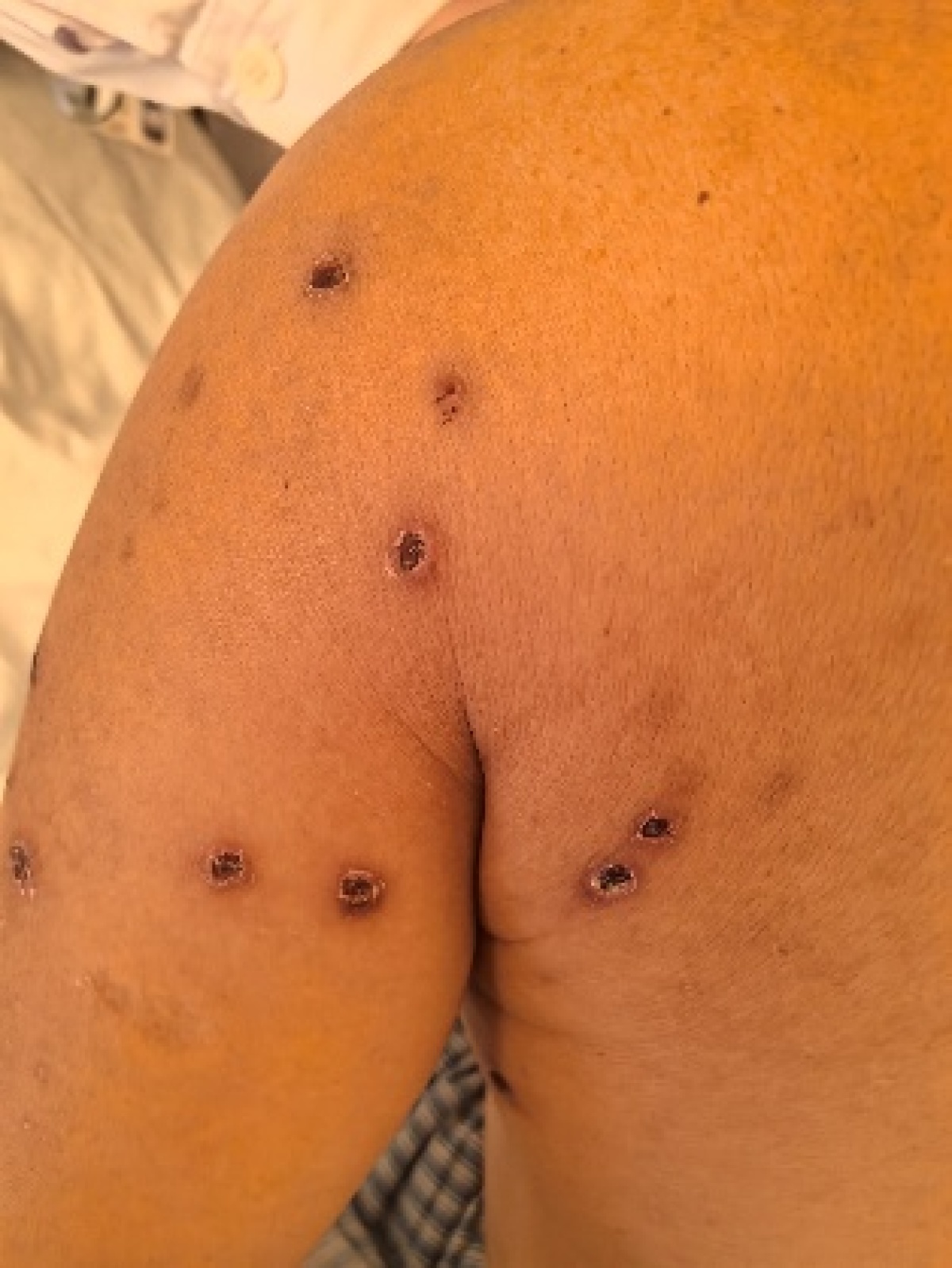 尽管他立刻挥手驱赶、奋力逃离,肩部、背部等处仍被蜇伤数十处。