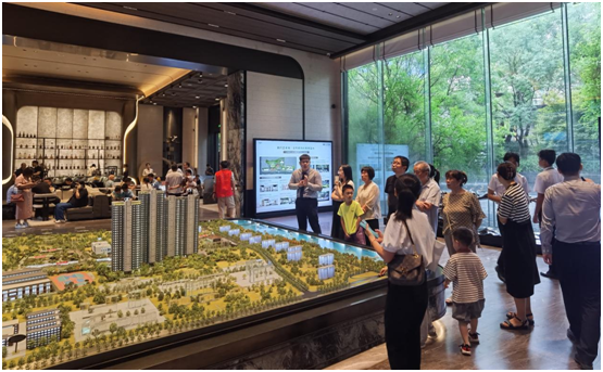 与以往不同的是,今年房企更注重“价值展示”与促销结合。如万科松湖天地·隐秀就开放了示范区,凭借着仅2.0的容积率,一线临湖的新规洋房产品,单日吸引超千人次到访。