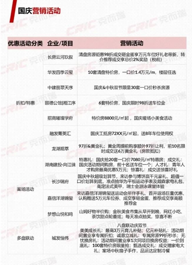 黄金周前夕,长沙楼市已提前点燃营销战火。从华润、建发、中建信和、城发等头部房企到区域本土开发商,纷纷推出促销活动。