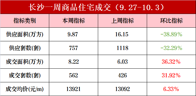 黄金周前夕,长沙新房市场已显现回升势头。据克而瑞数据,9月27日-10月3日长沙内五区一手住宅成交562套、8.22万方,成交均价13921元/㎡,新房市场已连续两周回升。而一手住宅供应757套、9.87万方,多个热门项目选择在国庆前和国庆期间获取预售证,为假期销售提供新房源。