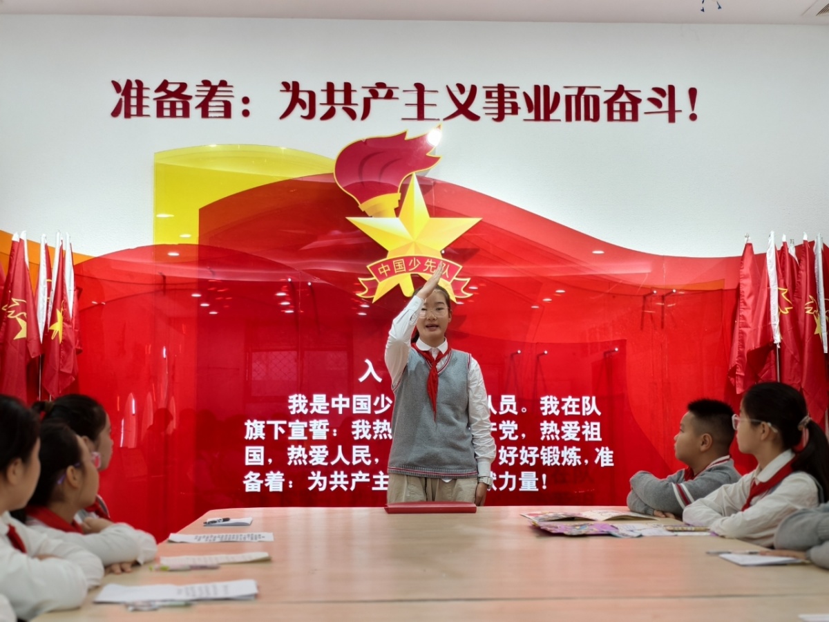 少先队知识问答环节则考验着候选队员们的知识储备与责任意识。“中国少年先锋队的创立者和领导者是谁?”“少先队的队歌是什么?”“大队委的主要职责有哪些?”面对主持人提出的问题,候选队员们反应迅速、对答如流,既展现了对少先队基本知识的熟练掌握,也体现了他们对自身角色的清晰认知,让现场师生感受到他们对加入大队委组织的充分准备与真挚诚意。