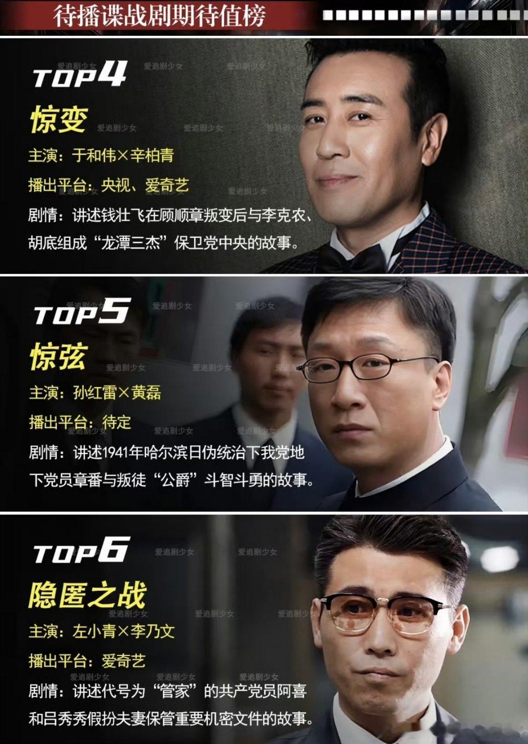 待播谍战题材电视剧期待榜 有你想看的剧吗[期待][期待][期待]