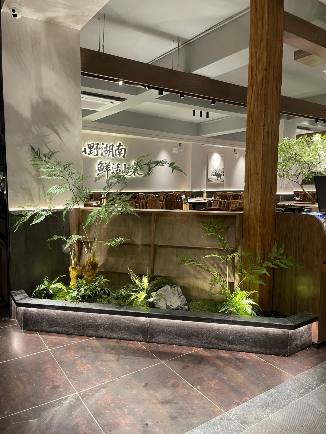 侘寂风餐厅设计!仿真绿植让空间呼吸起来