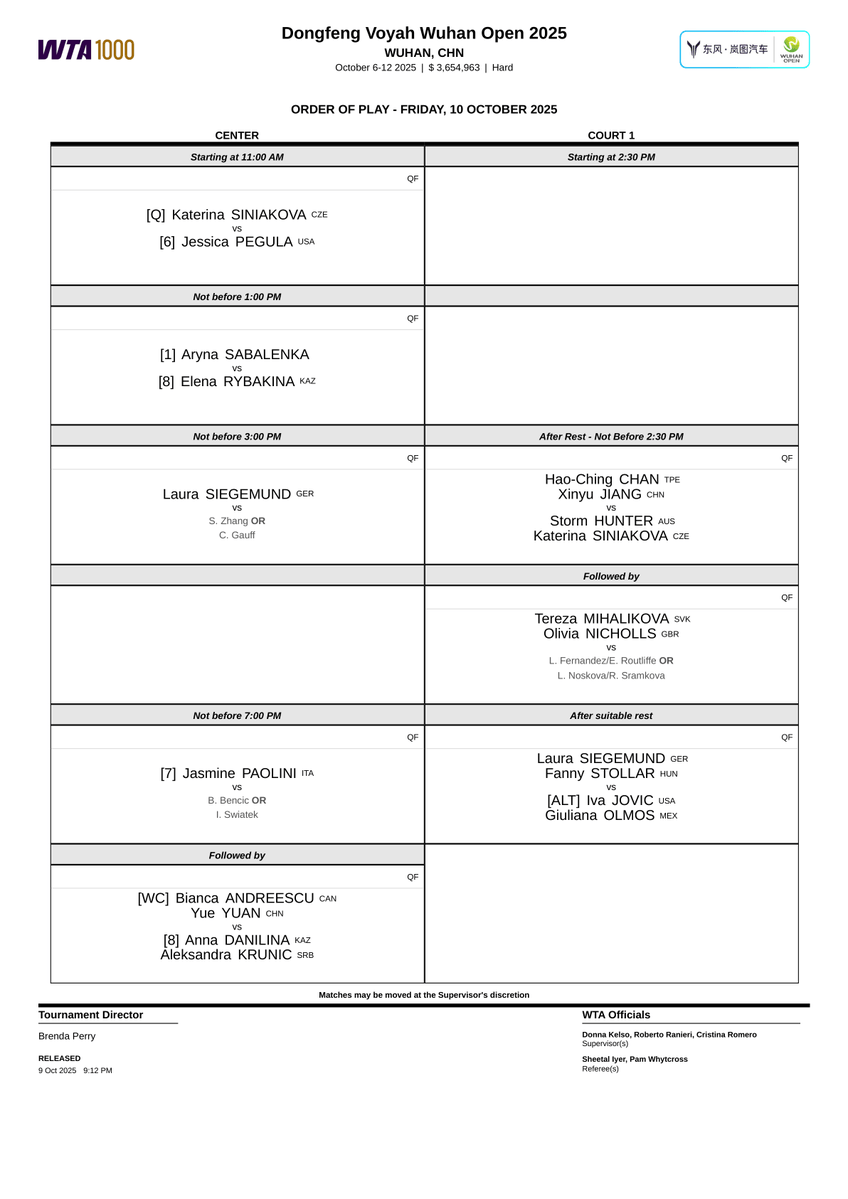 记者JoseMorgado发推特报道,高芙-张之臻的胜者将面临极短的恢复时间,他们在午夜左右结束比赛后,需于次日下午3点继续出战。这是由于西格蒙德明日需进行两场赛事。