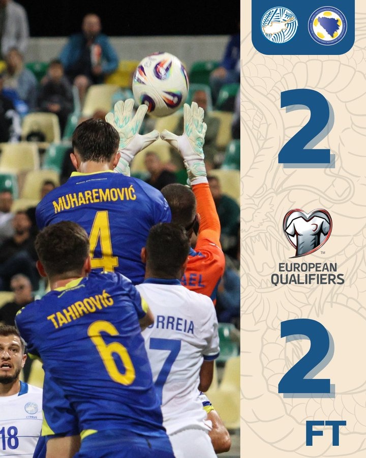 此役上半场卡蒂奇为波黑先拔头筹,迈克尔乌龙,波黑2-0领先,上半场补时阶段莱菲扳回一城,波黑2-1领先塞浦路斯,下半场第96分钟皮塔点射攻入绝平进球,最终塞浦路斯主场2-2战平波黑。