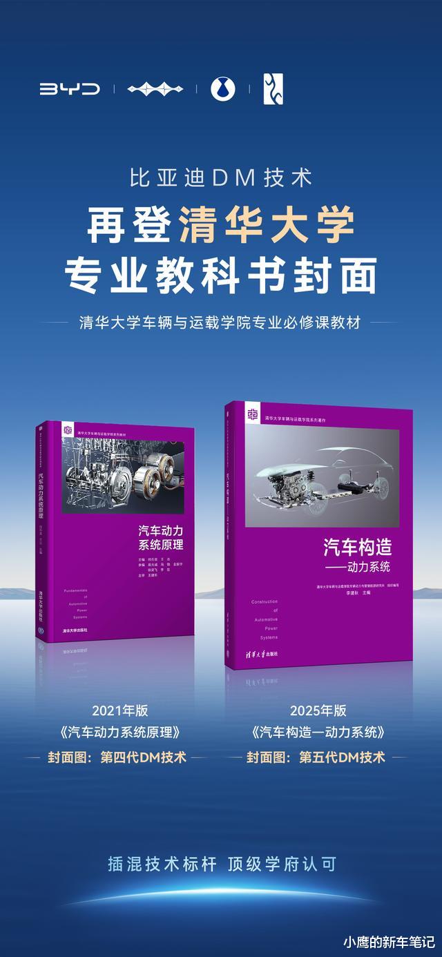 近日,比亚迪DM技术再次入选清华大学专业教材,并登上2025年版《汽车构造——动力系统》封面。这是继2021年第四代DM技术入选《汽车动力系统原理》封面后,比亚迪混动技术第二次获此殊荣。这不仅是对比亚迪技术领先性与行业代表性的高度认可,更是中国新能源汽车在全球汽车工业中迅速崛起的重要标志。