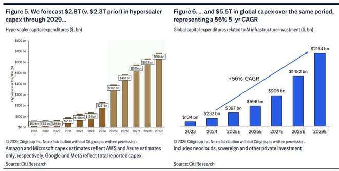花旗资深分析师们近日大幅上调对于包括微软、谷歌、亚马逊、Meta以及SAP在内的全球最大规模科技巨头们的AI基础设施支出预测,将2026年的AI基础设施支出预测从4200亿美元上调至4900亿美元。同时,花旗预计到2029年的科技巨头们累计AI基础设施开支预测也将从2.3万亿美元提升至2.8万亿美元。此外,根据该研究报告的测算,全球范围对于AI算力的需求到2030年将新增55吉瓦的电力容量,预计将转化为高达2.8万亿美元的增量级别AI算力相关支出规模,其中美国市场将占1.4万亿美元。
