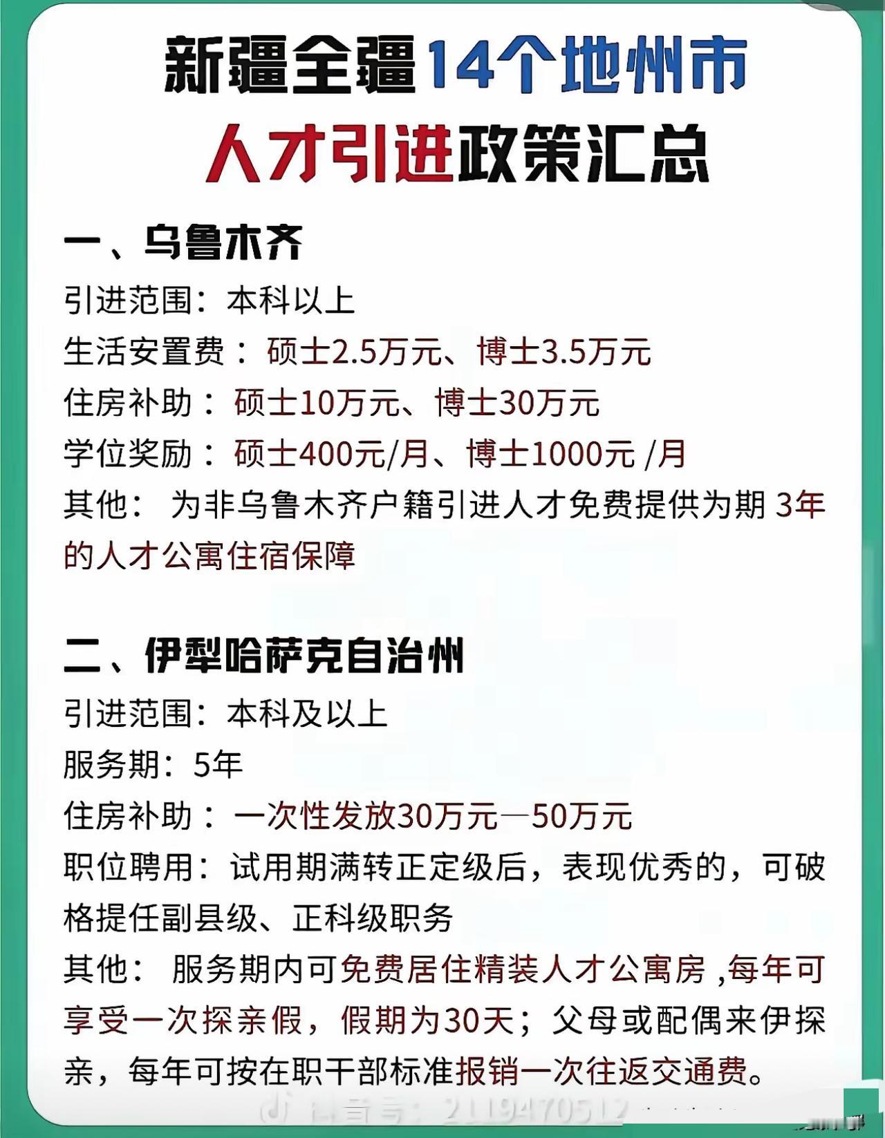 新疆这波“抢人”操作太硬核了!在内地都说博士贬值、研究生难找工作时,新疆直接甩出真金白银,把高学历人才宠上了天。 可不是空喊口号,“天池英才”计划直接瞄准领军人才、青年博士这些高端群体,昌吉州更狠,硕士博士给20到50万生活补贴,高端人才的专家公寓住满还能直接送,年薪最高能到200万。更贴心的是,很多岗位不用笔试,面试过了就是“铁饭碗”。 这哪是抢人,是精准“识货”。高学历或许不代表万能,但能一路过关斩将拿到文凭,至少证明了自律和学习能力,这些正是新疆发展“八大产业集群”最需要的。比起盲目说学历无用,这种把人才和发展需求精准匹配的做法,才是最聪明的。 你们觉得这波优厚待遇,能让更多年轻人愿意扎根新疆吗?