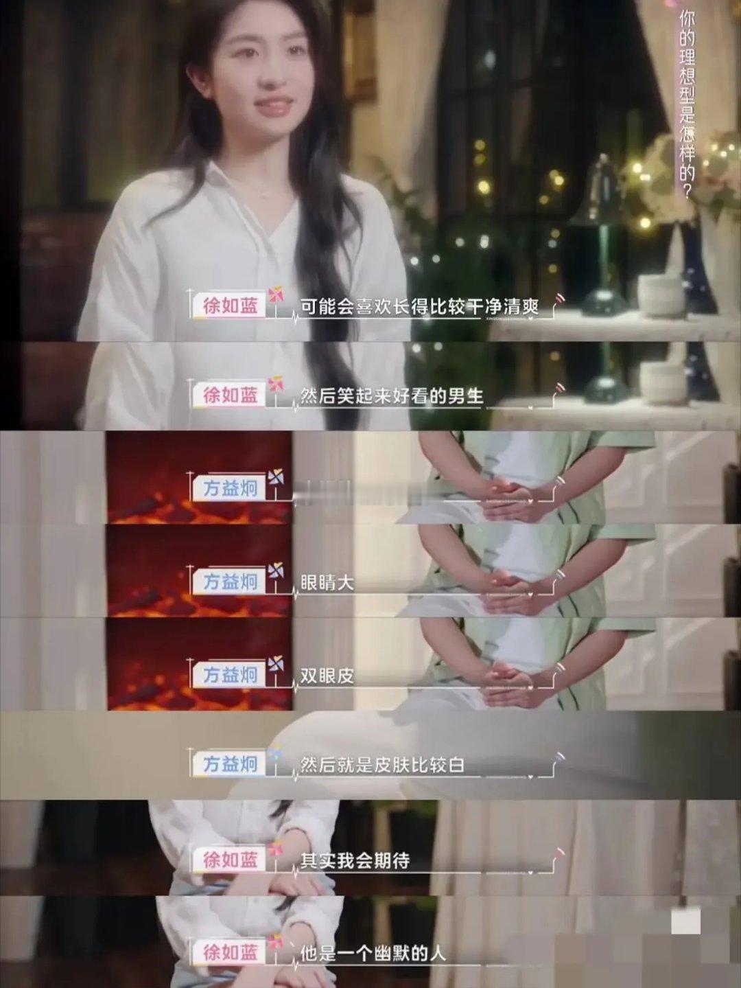 这才是真正的回响,缘分天注定,方蓝绝配说累了。回看心动的信号第八季一开始描述自己的理想型,徐如蓝和方益炯的描述完全是在描述对方,这才是真正的回响。