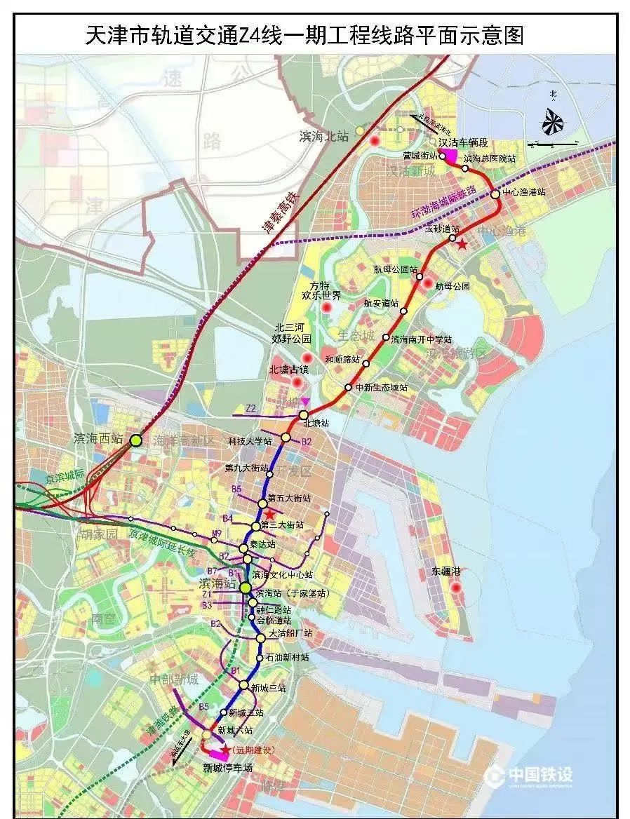 天津市轨道交通Z4线一期工程(北段)项目全长43.7km,全线共设车站24座,最高运行速度120km/h,项目覆盖汉沽老城区、中新天津生态城、滨海—中关村科技园、天津经开区东区、天碱片区、于家堡、中部新城等客流集散点,是天津市“十四五”规划重点工程、2025年二十项民心工程之一,也是滨海新区“十大工程”之一。
