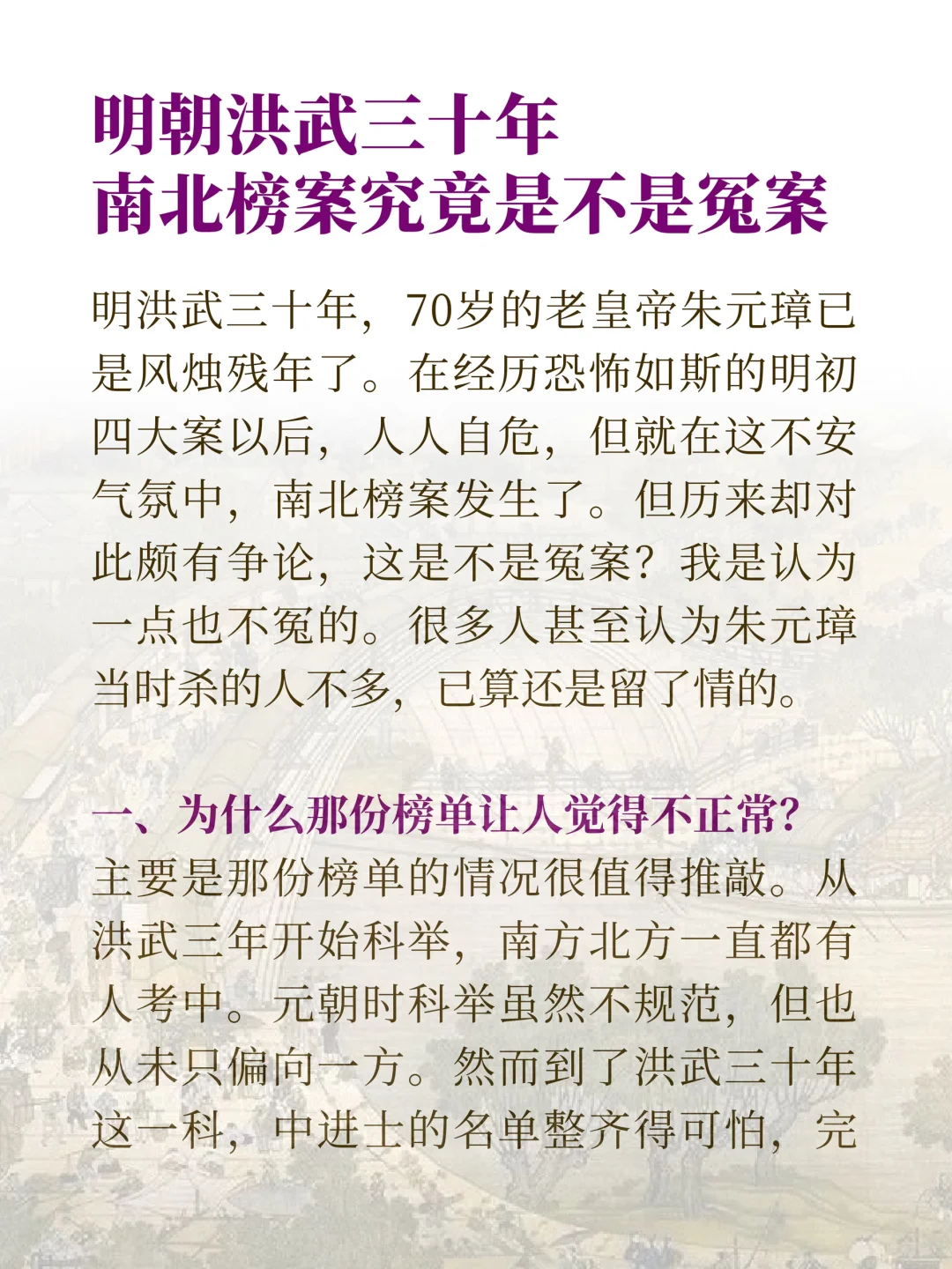 洪武南北榜案是一场怎样的垄断黑幕?这是真巧合还是暗箱操作? 历来也有争论这究竟是不是冤案?且看本文为你细细道来。