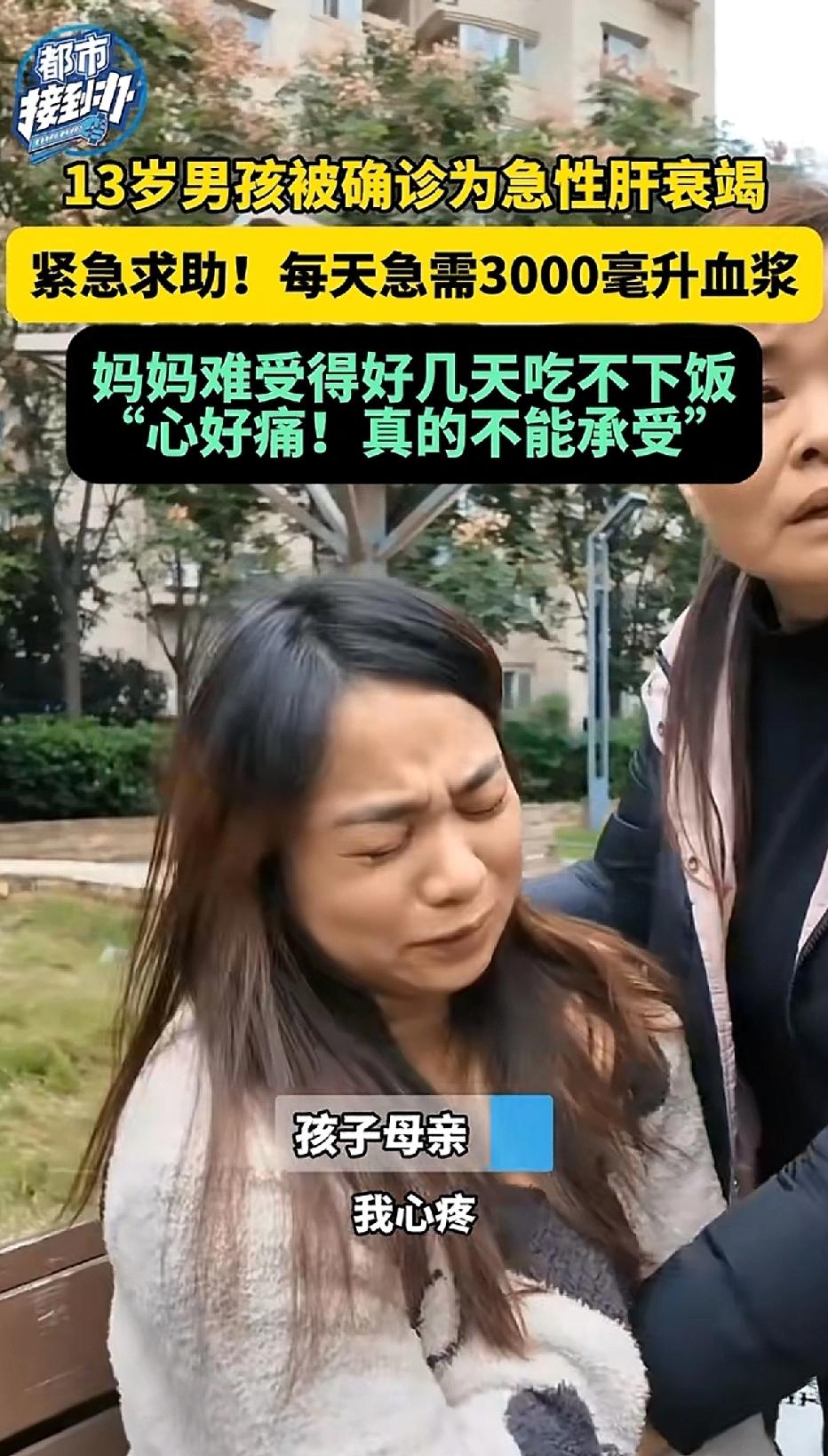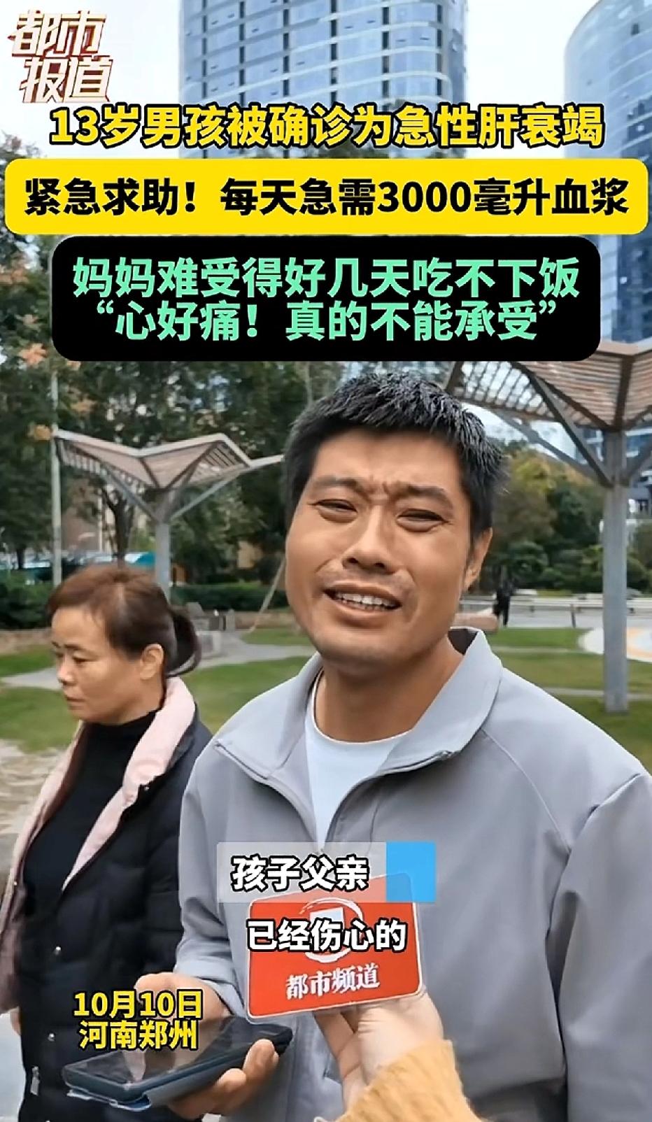 10.10日河南郑州,13岁男孩被确诊为急性肝衰竭,急需3000毫升血浆救命。他的爸爸哭着在网上发出求助。他的妈妈几天不吃不喝,哭得瘫倒在地,哀求网友们“帮帮忙,救救她的孩子。” 救人一命,胜造七级浮屠。 同时,在四川广安,有病人家属反应:“医院让我们去捐血,不捐血就不给手术。” 医院回应:血库告急,没有那么多血液。 当地卫健委回应:没有强制要求捐血。只是倡议捐献。 血液无法人工制造,只能依靠献血。善心人士献出的血液,是保障医疗需求的“生命线”。 有些人常在网上抵制无偿献血,甚至使很多人产生误解,认为捐血会影响身体健康。 甚至有人说,捐献的血被拿去售卖。 血液要人工采集,精密运输,检测,入库低温保存,有需要时,再出库运输到医院,这都是成本。 那些妄想猜测,才导致如今急病患者无血可用。 没人能预知未来的遭遇,而那些源自内心的善意,正是照亮未来的光。 来源:都市报道