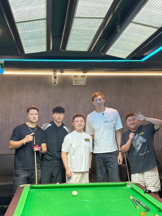 虎扑10月10日讯今日,周琦在个人社媒分享了近期日常照片,照片中与平常心、前斯诺克球员于德陆等人在台球厅。