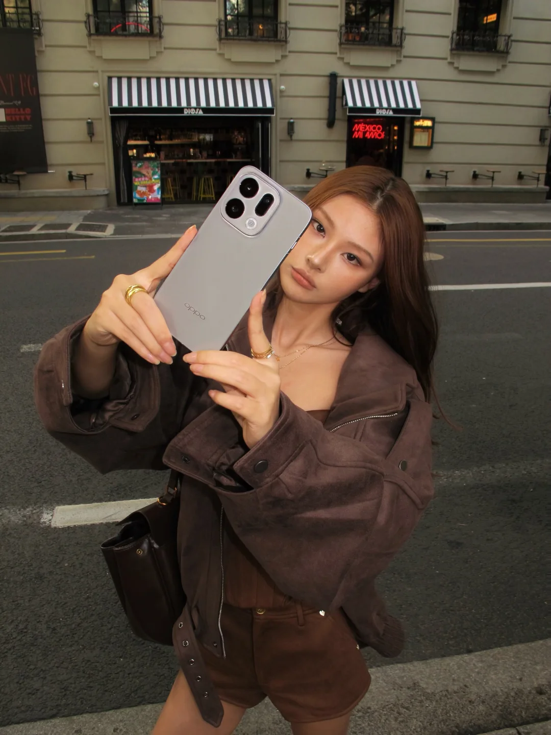 今天inspo:“都市猎人”🐎,牛仔穿搭把西部自由感拽到街头啦~手上钛色的OPPO Find X9在秋日阳光下超级高级大气,简直就是新的出片秘籍,一下就把整个人的精致感点亮。背板还采用了全新绒砂工艺的,搭配精致冷雕的镜头模组,质感绝了📸,一定要上手感受一下真机质感,强推!