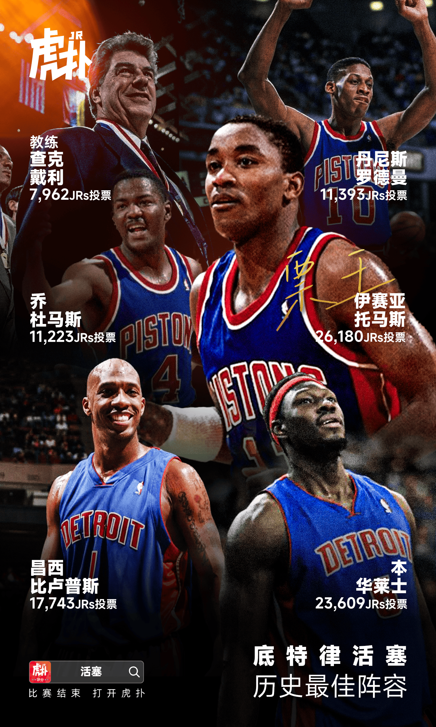 JRs评选的活塞队史最佳阵容正式出炉,丹尼斯-罗德曼的名字再度出现在其中(11393票)。这也是罗德曼在本次系列活动中的第二次入选,此前他成功入选了公牛队史最佳阵容(64799票)。