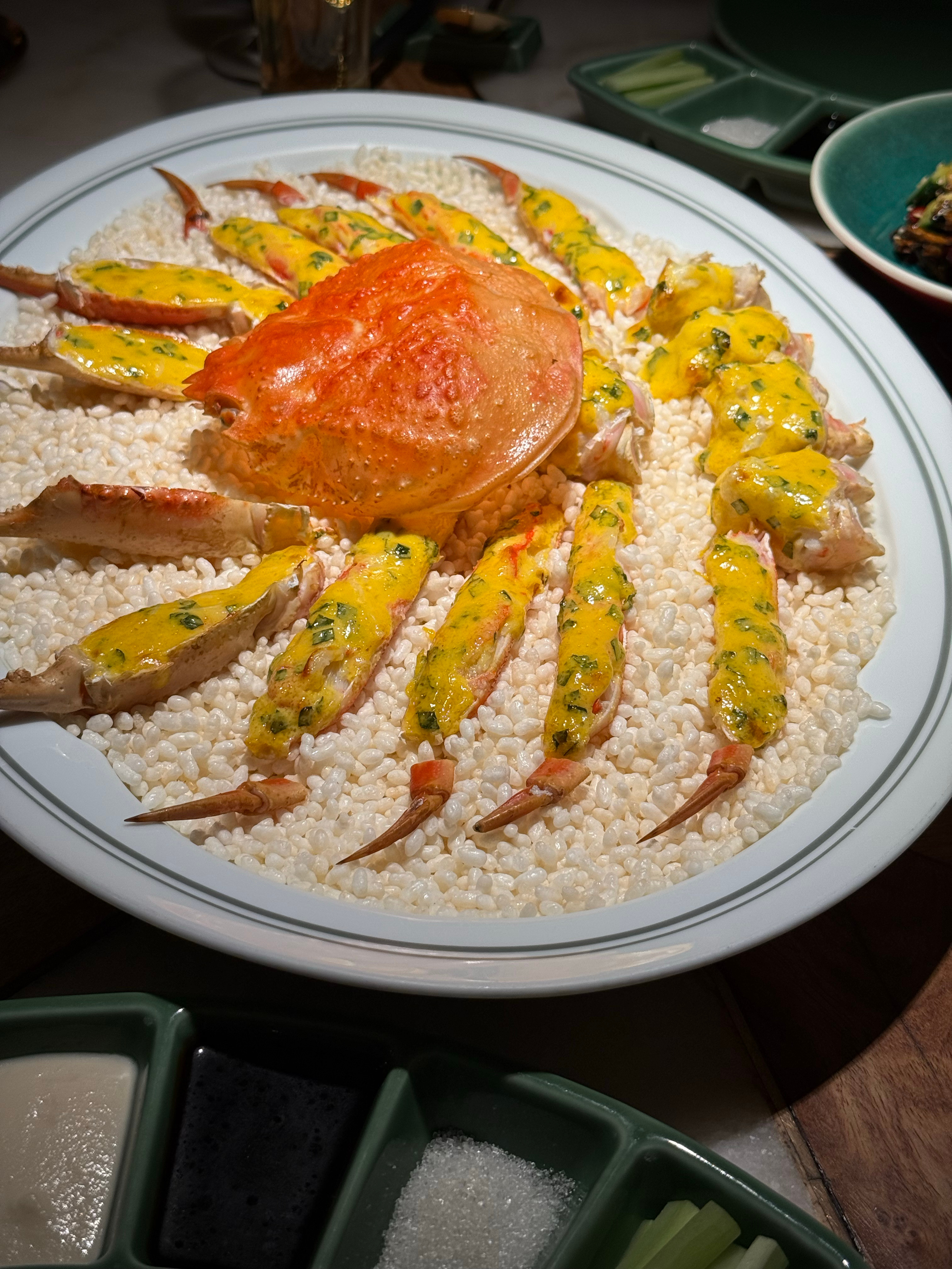 晟永兴感觉属于有点融合菜系,甚至能吃到帝王蟹,我觉得是比较时髦的好吃餐厅,高德扫街榜评分4.5分这样子,外国朋友来了也赞不绝口,属于不是地道本地菜,但是呢!融合得好,所以大家接受度也高,比如他家的虾仁就是捶打好几个小时➕浸泡,所以口感非常丰富。