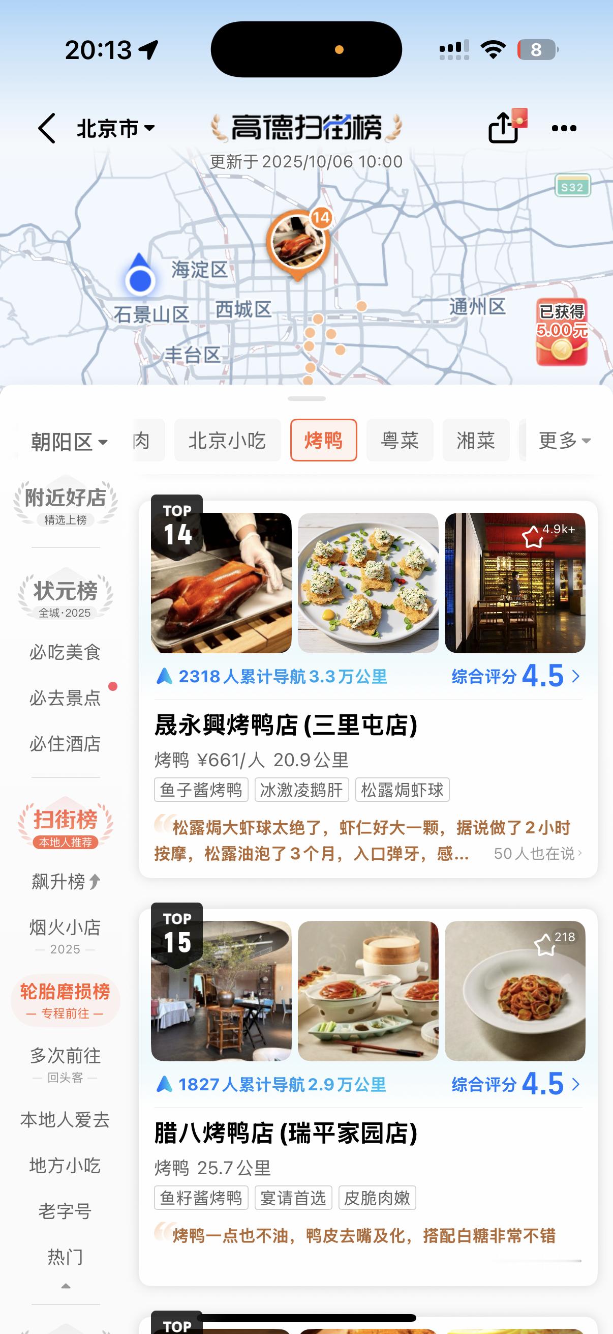 这俩都是高德轮胎磨损榜的上榜餐厅~外地朋友来北京的话,我真的建议你们整一个高德!北京烤鸭店多,好吃的不好吃的都有,跟着扫街榜比较不容易踩雷[羞嗒嗒][羞嗒嗒][羞嗒嗒]