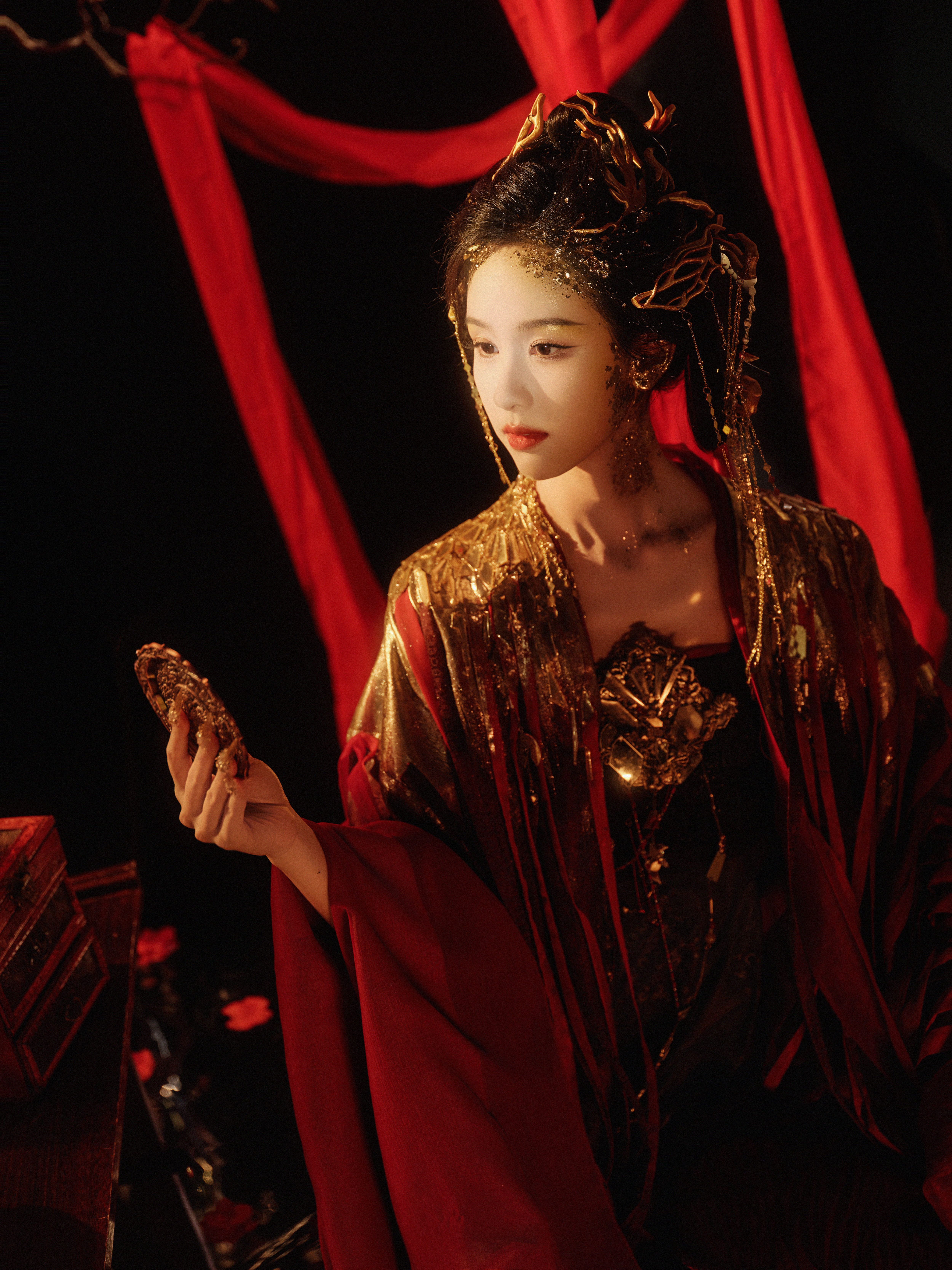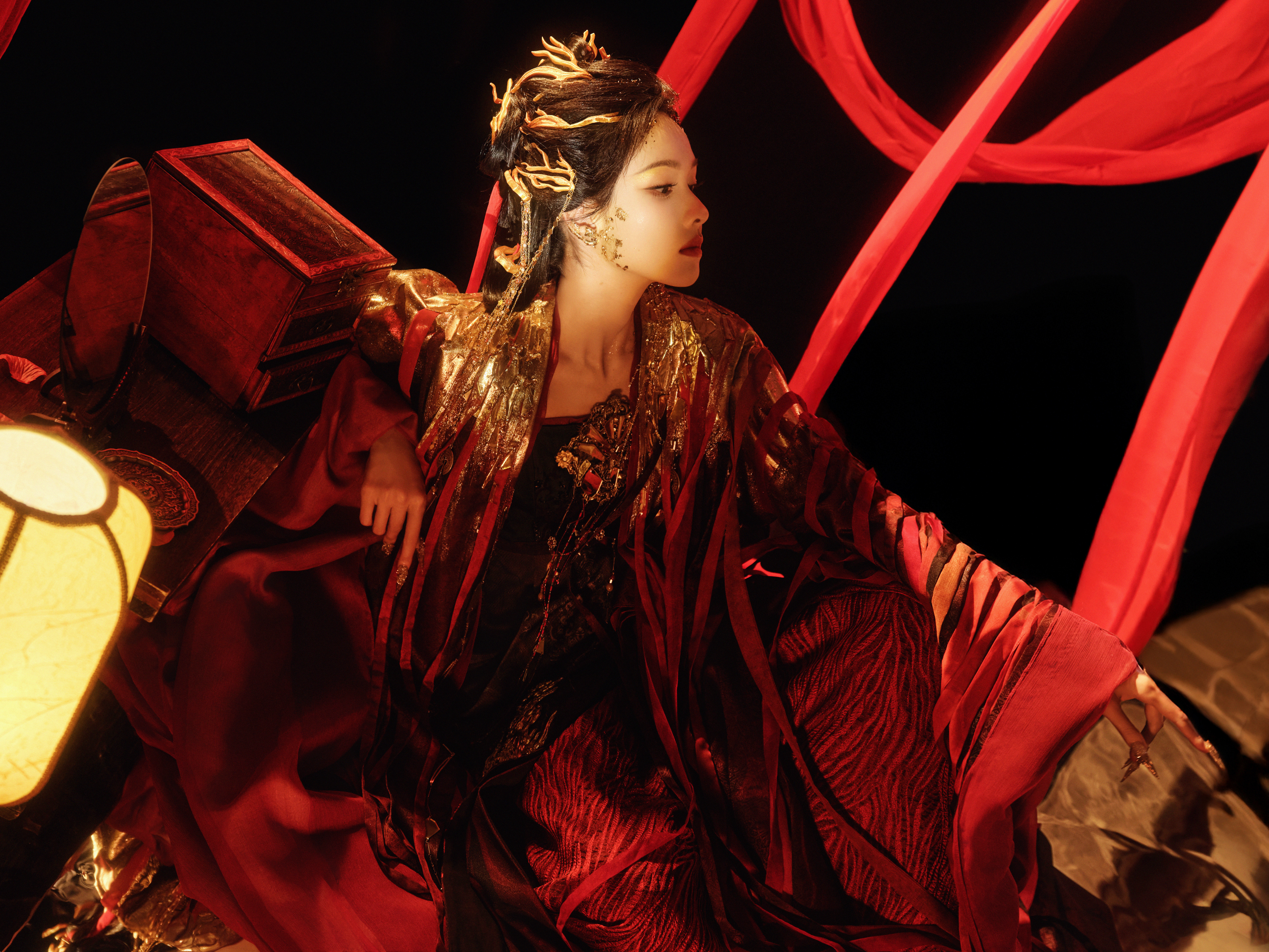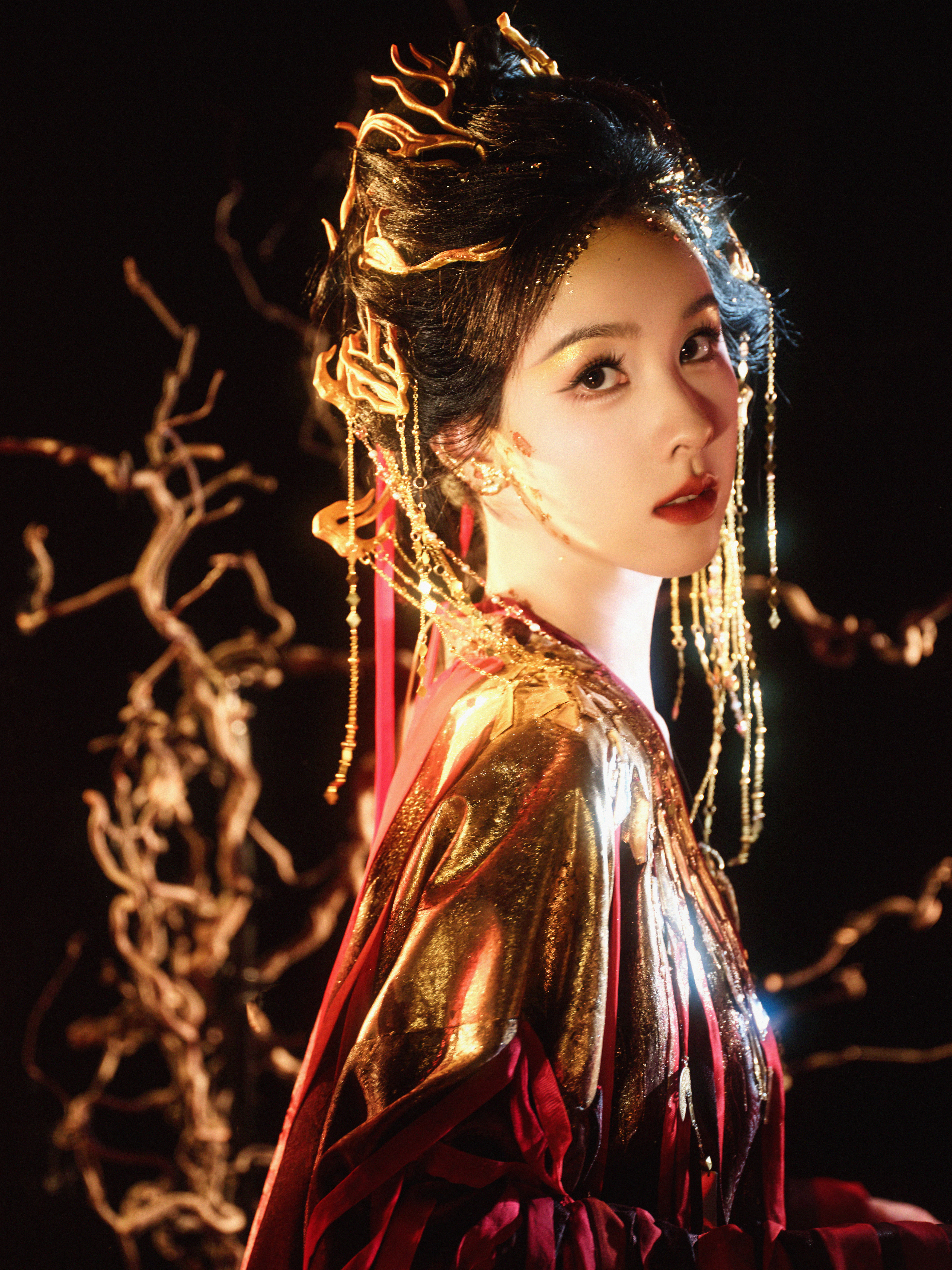 赤衣浴火,金箔点缀眼波星河,共渡幻梦一场。