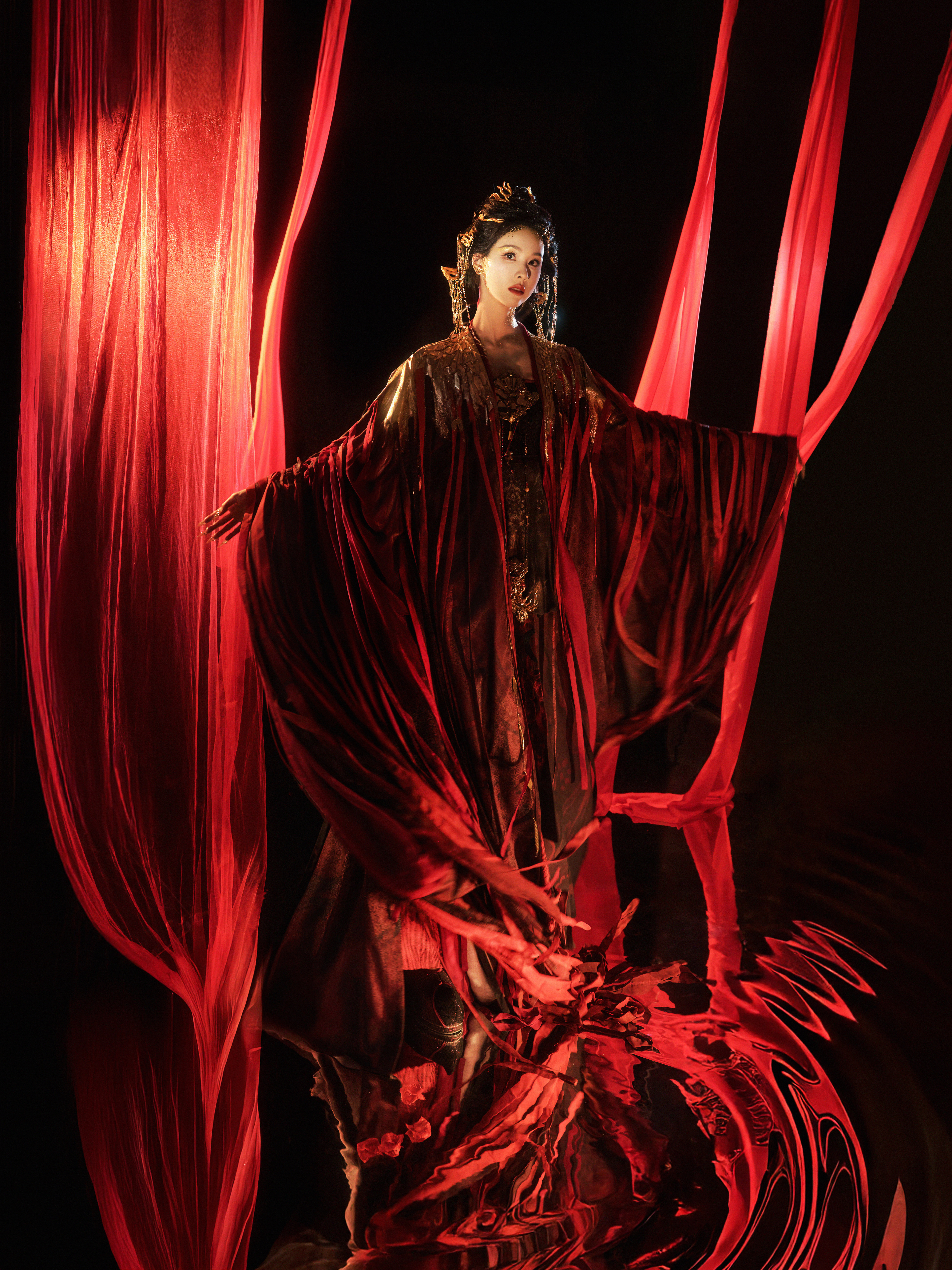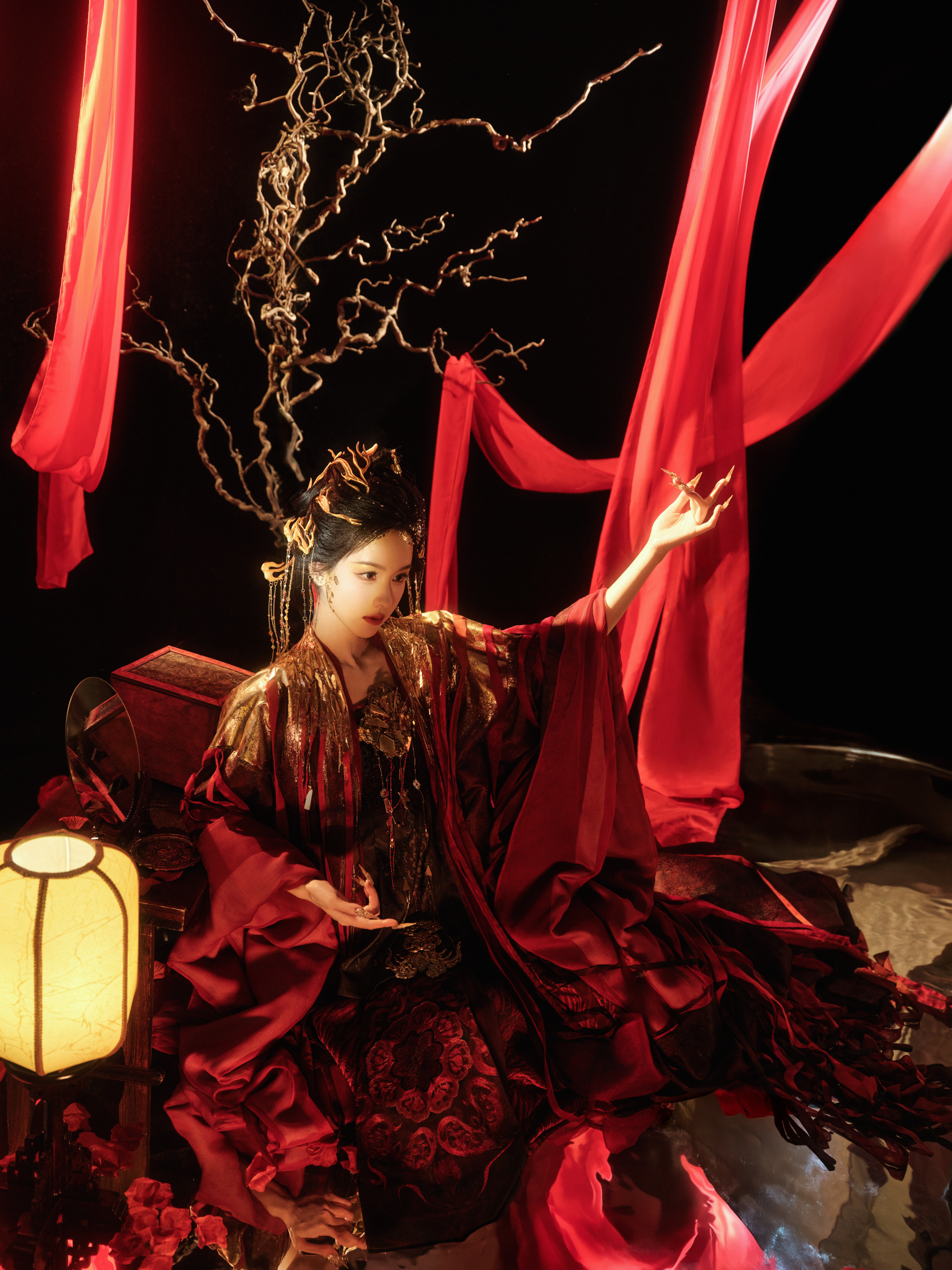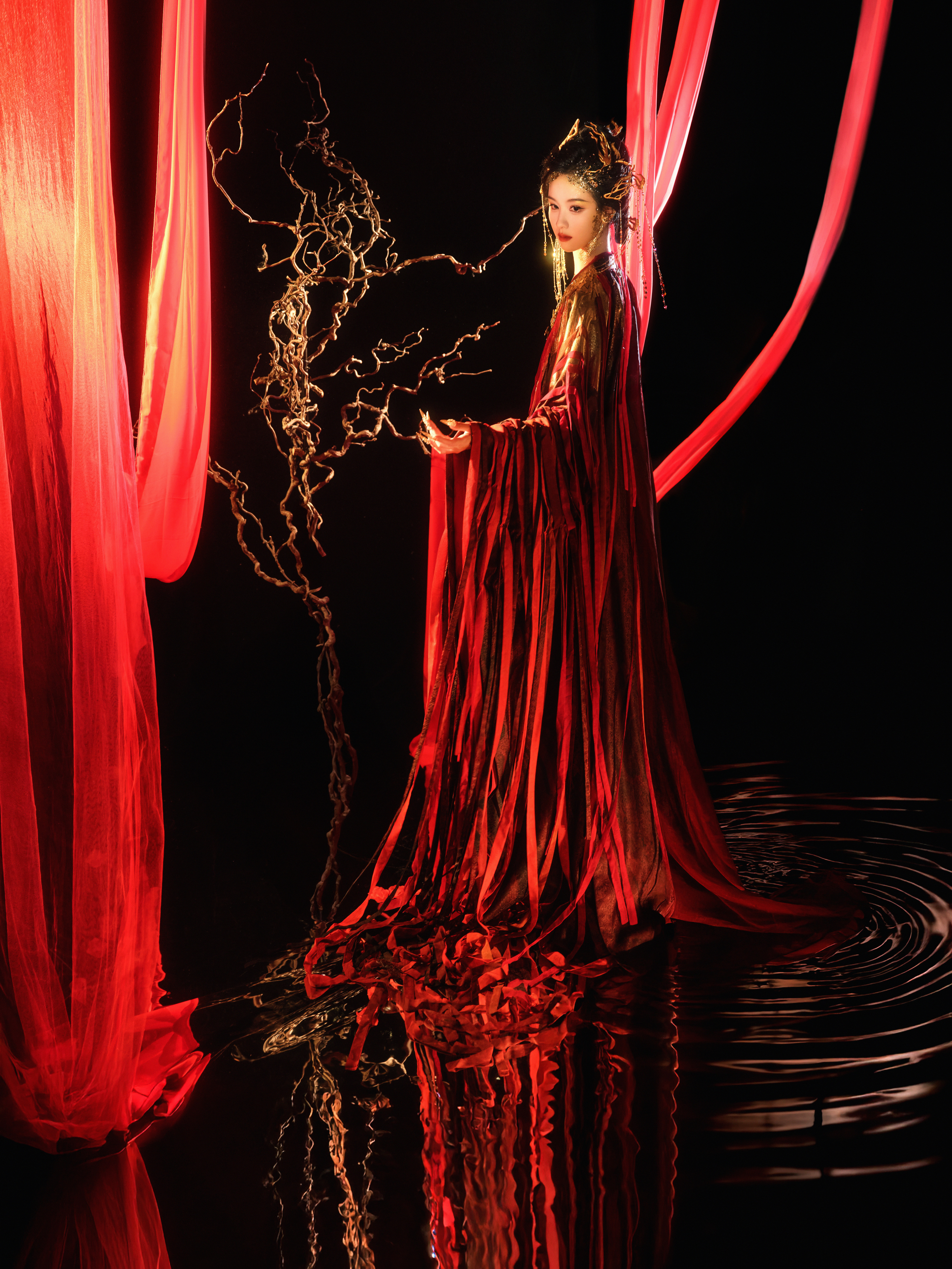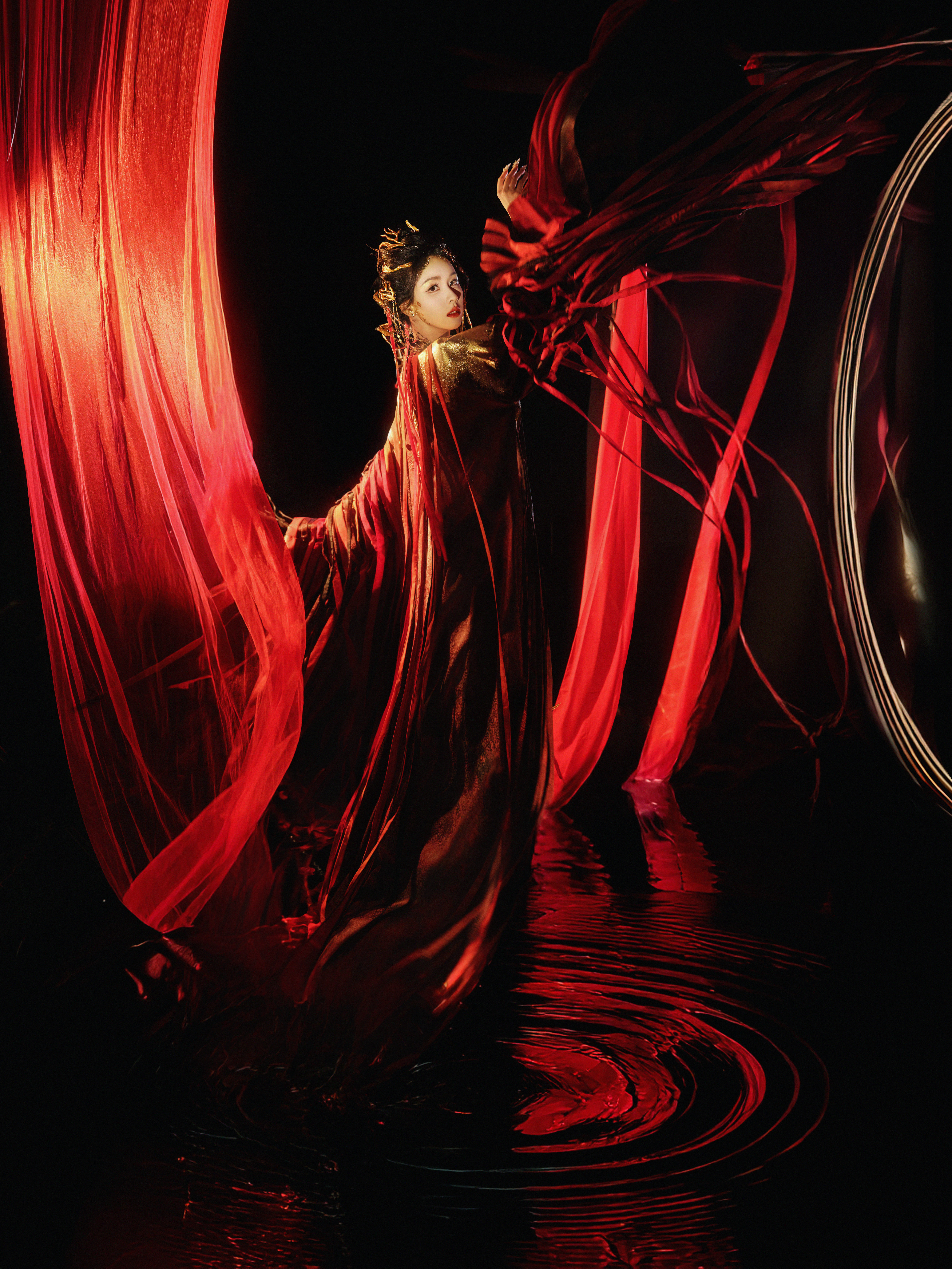 赤衣浴火,金箔点缀眼波星河,共渡幻梦一场。
