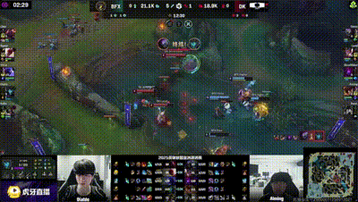 虎扑10月10日讯DK对阵BFX次局,ShowMaker马尔扎哈开到Diable,DK小龙团1换5大胜