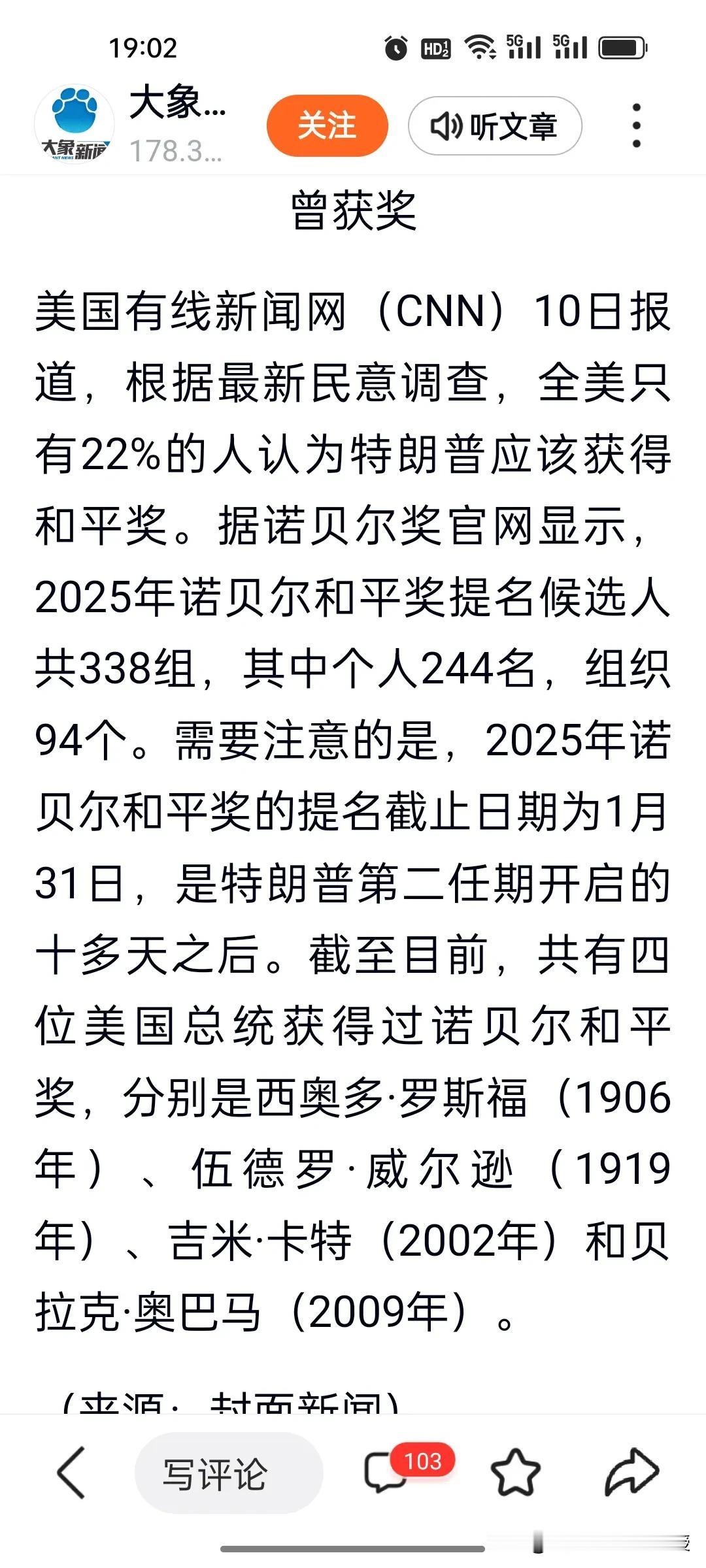 刚刚,特朗普诺贝尔和平奖再次落空!获奖者是来自委内瑞拉的玛丽亚·科里娜·马查多。特朗普之前三次提名均未获奖,这两天还干了让以色列停火的大事,特朗普声称自己调停了七场战争,可是根据《界面新闻》刚刚报道,诺贝尔和平奖还是没能花落特朗普,这也足以看出挪威诺奖组委会还是秉持公正公平,顶住了来自特朗普方面的的压力,现在看看气急败坏说得不到和平奖就是“对美国最大侮辱”的特朗普会不会对挪威采取措施。这个夜晚,对特朗普来说,终究是难以入眠的。