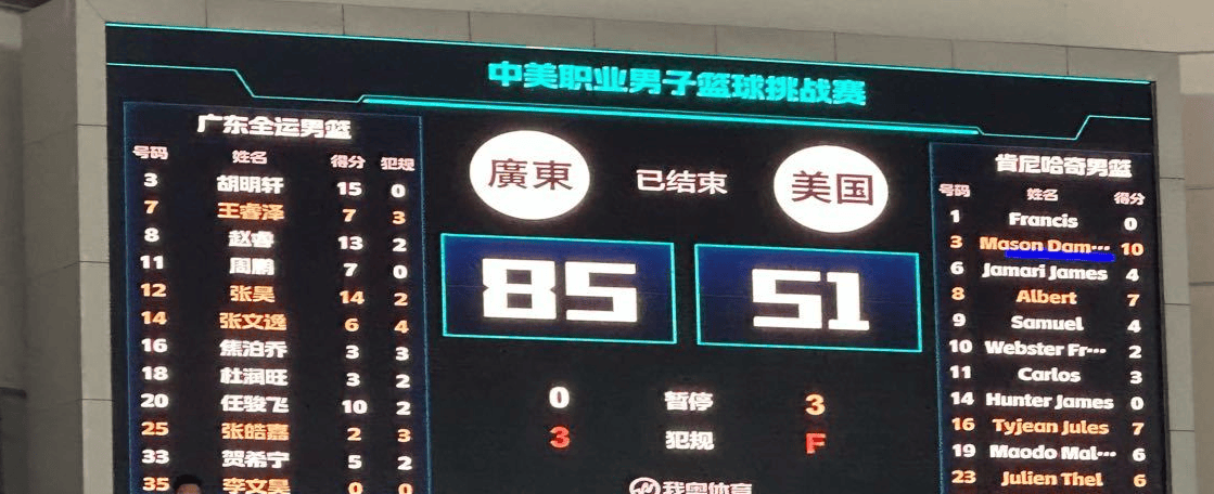 热身赛:胡明轩15分,广东全运男篮85-51美国肯尼哈奇男篮