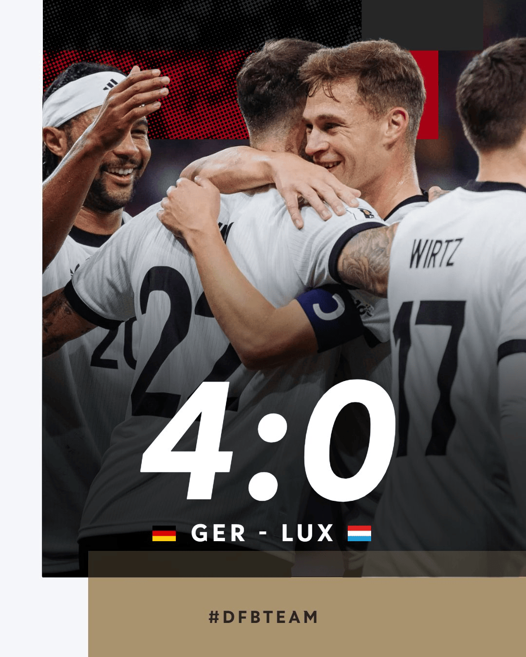 虎扑10月11日讯世界杯欧洲区预选赛,德国4-0大胜卢森堡。