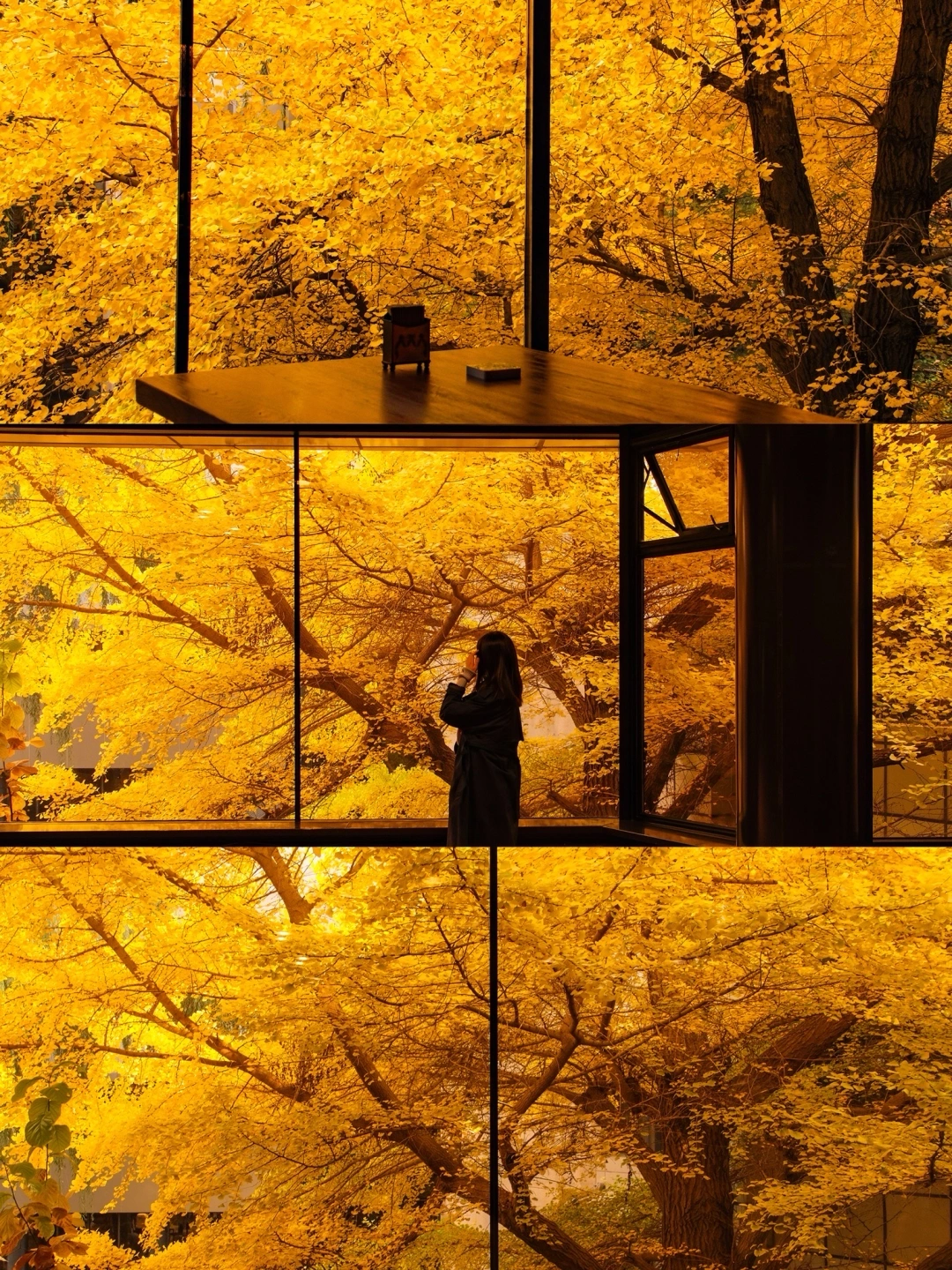 🍂在百年银杏树下喝咖啡,四合院露台赏秋色