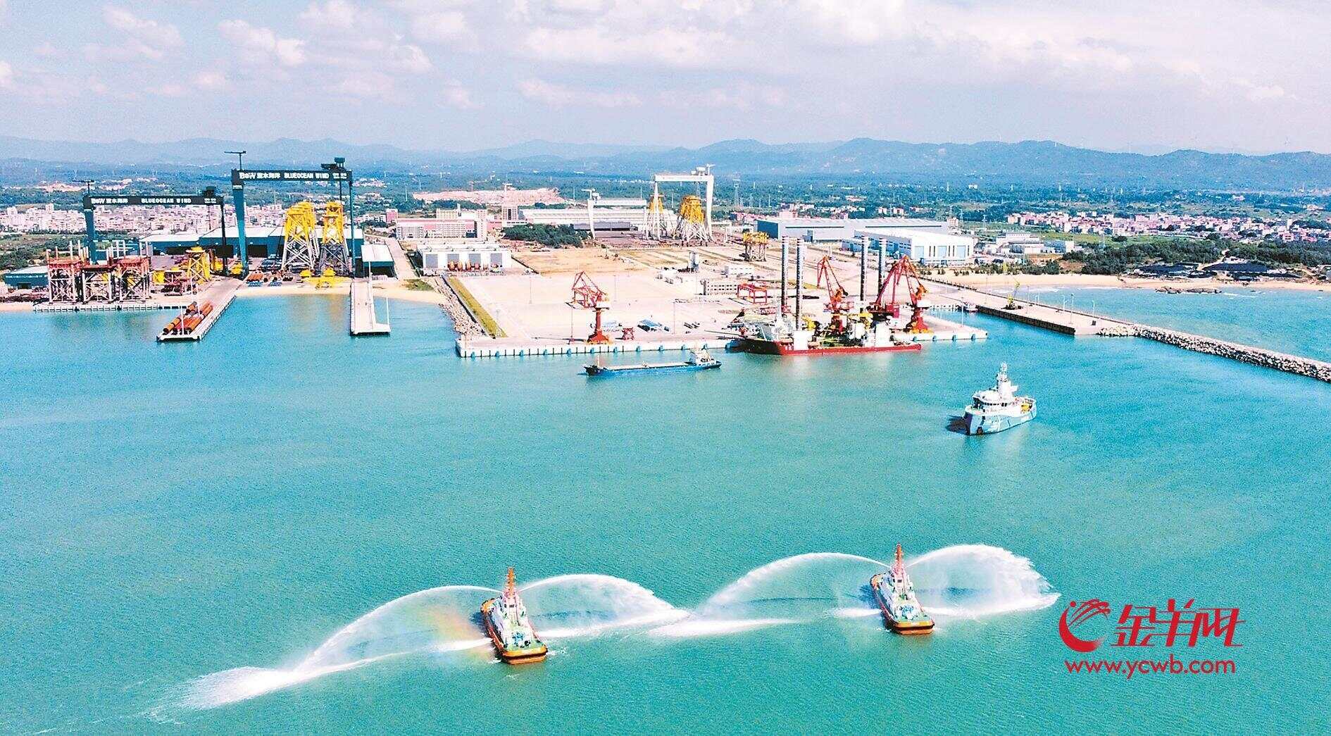 羊城晚报全媒体记者陈锴跃摄影报道:10月10日,揭阳市海洋经济产业高质量发展大会在揭阳市惠来临港产业园召开。现场举行了国家电投前詹通用码头开放活动,宣布该码头口岸正式开放。该码头是揭阳市首个对外开放的通用码头,在规划设计阶段,即系统性融入海上风电大部件运输要素,着力搭建海上风电装备高效转运专属通道,成为粤东首个“风电母港”。