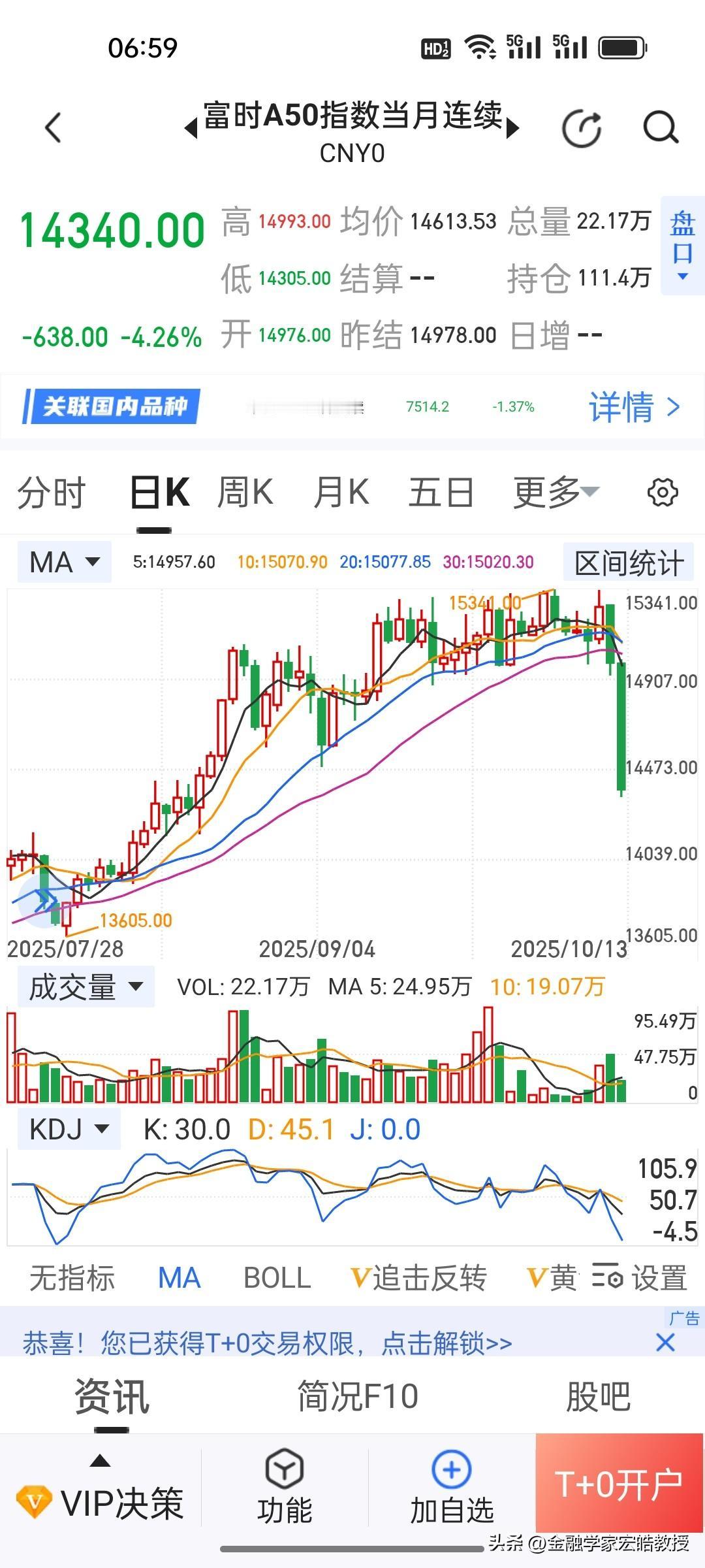 特朗普急得一跳脚,美股就崩了!富时A50指数也大跌!纳斯达克中国金龙指数创出8月27日以来最大跌幅!昨天特朗普没得诺贝尔和平奖,心里肯定不是滋味,他没有宣布向挪威加关税,反而向中国发难,因为中国对稀土出口管制,特朗普发文说要送大幅提升中国关税。 中美贸易谈判已经经过多轮,双方都在谈判中尽力达成共识,可是特朗普突然又要对中国大幅增加关税,这意味着打破了之前中美双方谈判积极的取得成就,特朗普知道自己话语的分量,这次是不是又提前在资本市场做空赚钱了?