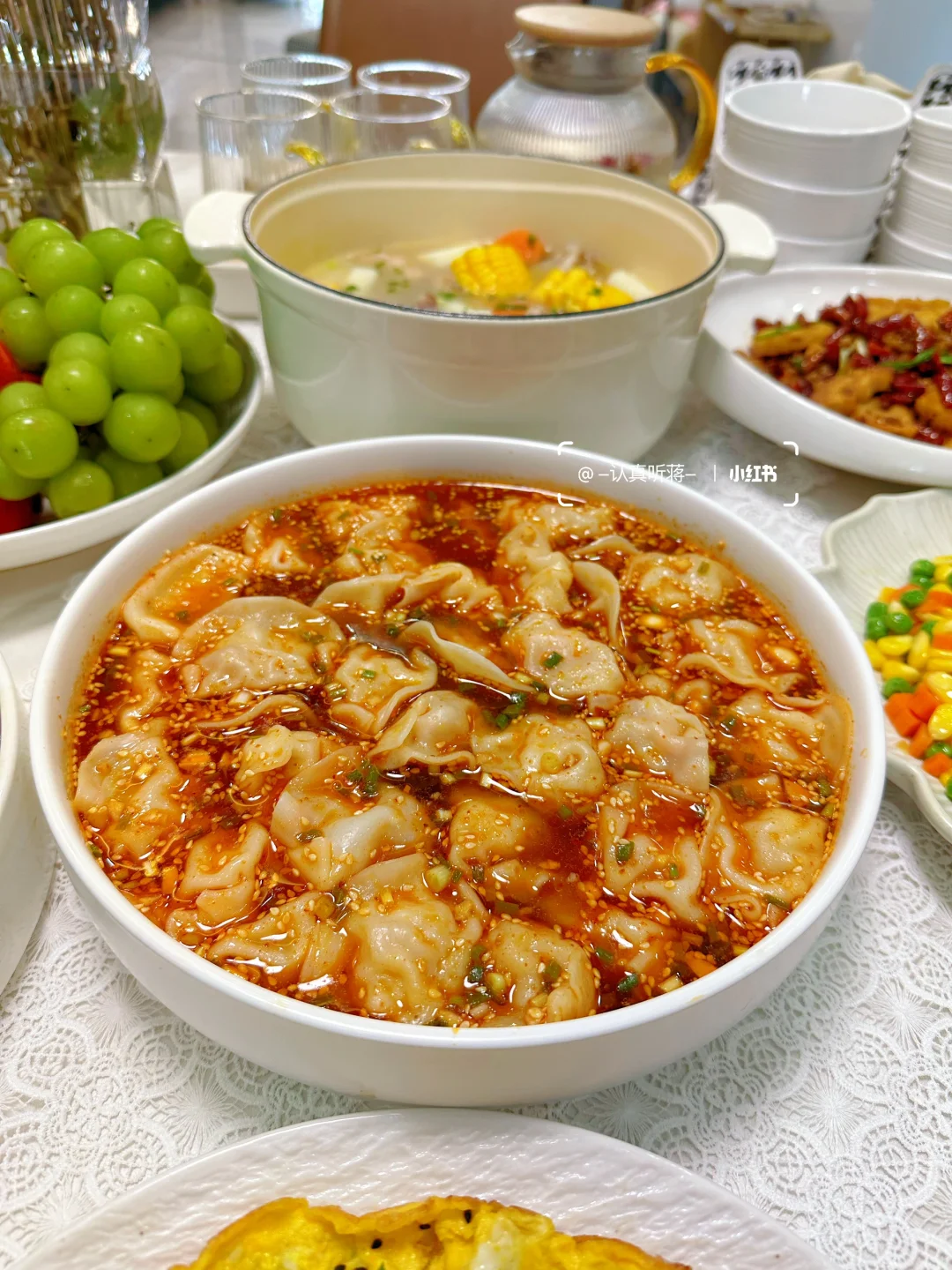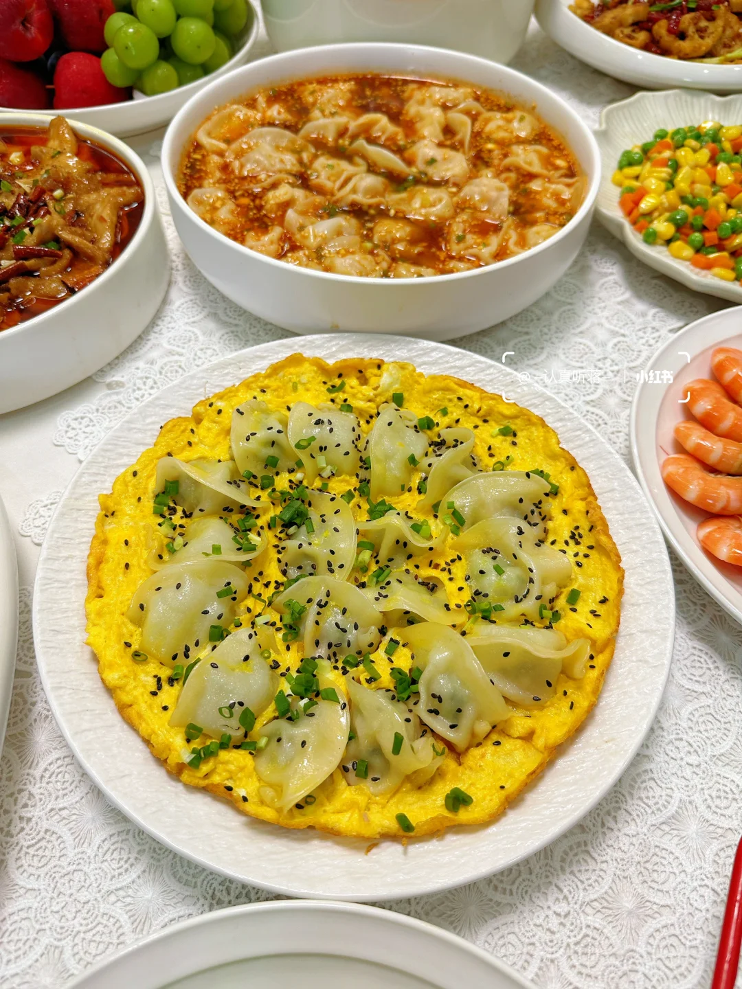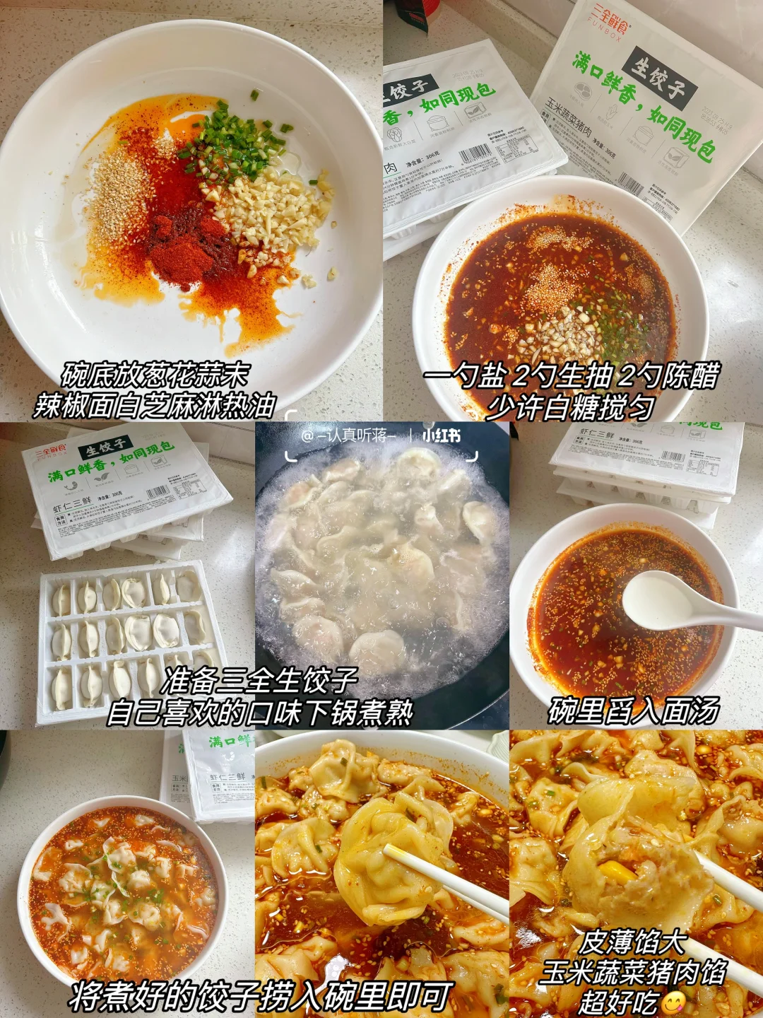 做了一桌拿手菜招待许久未见的好友,朋友说在外工作一直都是工作餐和外卖,还得是家里的菜吃起来更有家的味道。 分享今日菜单 [一R]清炒西蓝花 [二R]鸡蛋抱饺 [三R]酸汤水饺 [四R]清蒸多宝鱼 [五R]花雕熟醉蟹 [六R]水煮肉片 [七R]三色蔬菜丁 [八R]水果拼盘 [九R]干锅藕片 [一R][零R]白灼虾 [一R][一R]山药排骨汤 还准备了三全鲜食生饺子,有虾仁三鲜,大白菜猪肉和玉米蔬菜猪肉三种口味,今天尝试了两种神仙做法!先用虾仁三鲜的做了抱蛋煎饺,不用解冻直接下锅煎,饺子皮煎的香香脆脆的,虾仁的馅儿馅料饱满,吃起来鲜美多汁,朋友说跟现包的口感一样好吃! 天气冷了也很适合来上一碗酸汤水饺,一口下去酸酸辣辣的,味道绝了!做法很简单哦,看图文教程快去做起来! 之前吃的速冻水饺一口就能吃出来是速冻的,这次三全鲜食生饺子的锁鲜技术大大提升,真空和面的工艺缩短了保质期,所以吃起来口感鲜香十足,三种口味都很好吃,配料表也很干净,国货老品牌啦,吃起来也很安心哦~ 真的很适合不会包饺子又喜欢吃现包水饺子的伙伴们,一定会征服你们的胃!