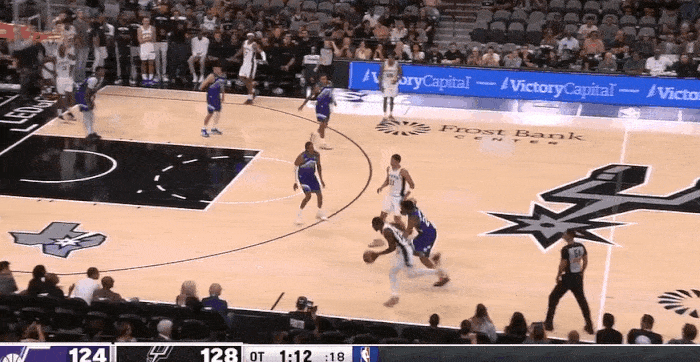 第一个加时赛,琼斯-加西亚加速突破飞身上篮打进,马刺领先6分。