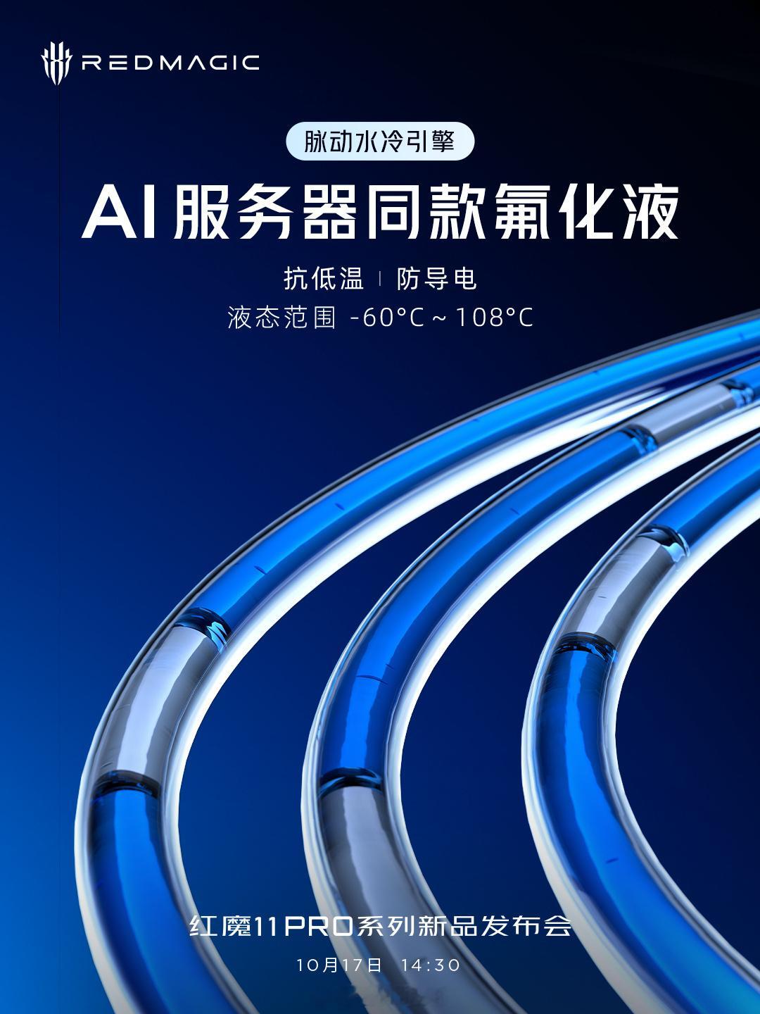 红魔 11 Pro 系列脉动水冷引擎,AI 服务器同款散热氟化液,全新抗跌落防泄漏设计。