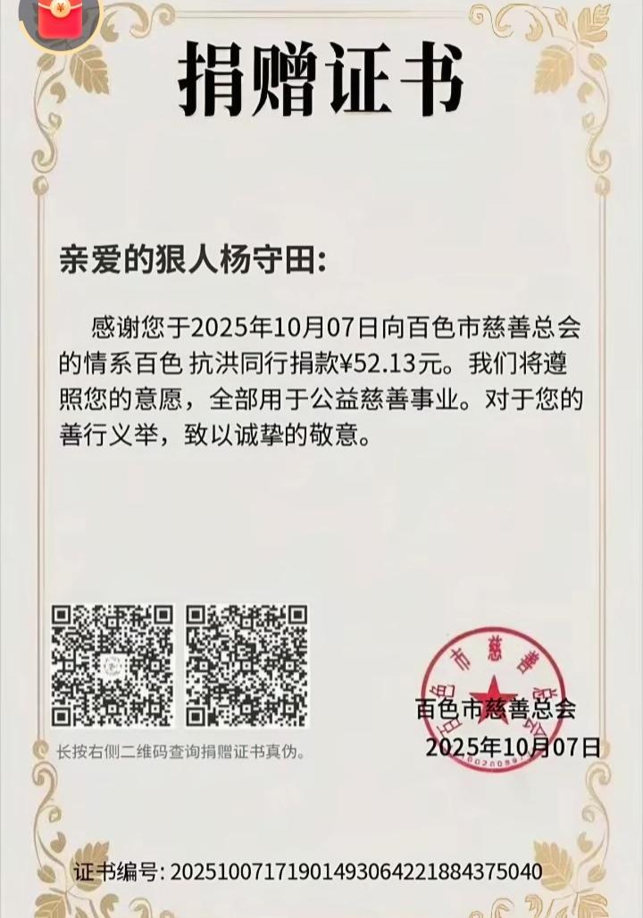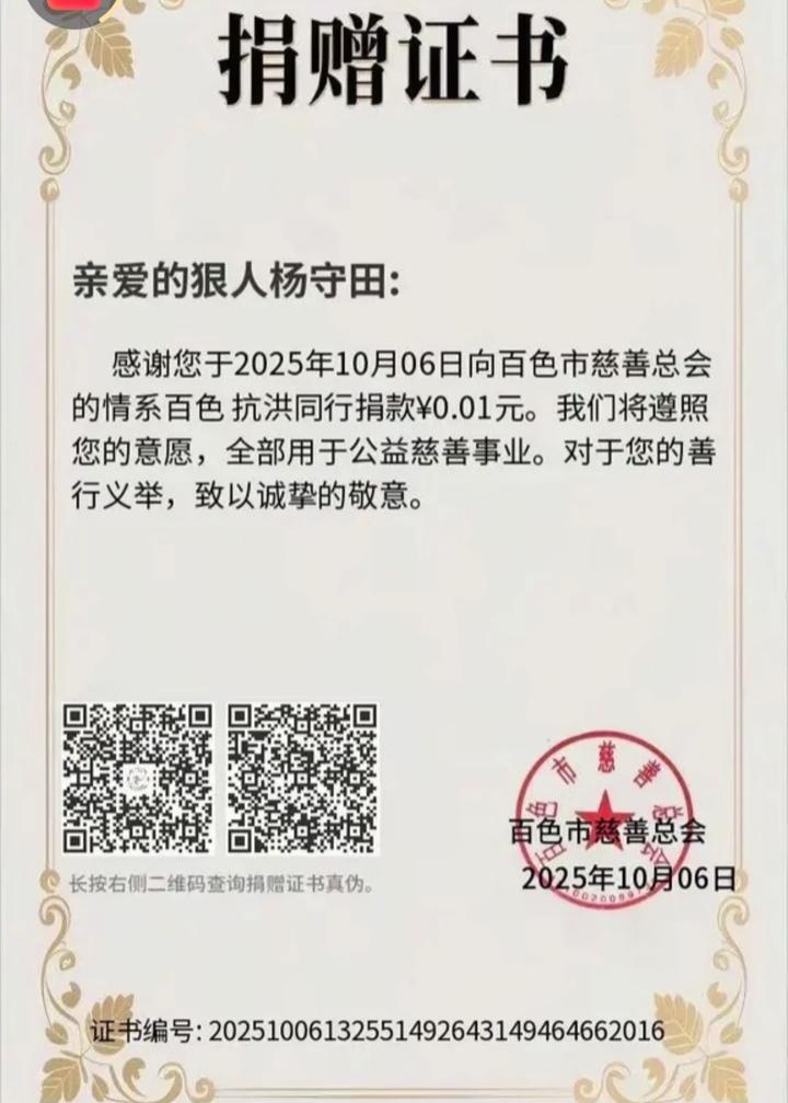 捐一分钱这位博主,让我想起了一位故人,2011年,一位出身贫寒的母亲带着患有眼癌晚期的女儿四处筹钱,30万的手术费,那个时候是个天文数字,如果不是石金泉以身入局,策划了一场空前绝后的舆论风波,以富二代的身份,让这位母亲抱着孩子一路在街头跪拜2公里,然后反悔,引发社会震怒,那时候网上对他的骂声一片,但不过3天,30万的手术费就这样筹齐了。 现在,这位博主,以一分钱,让更多人关注到了广西百色灾情,何尝不是以身入局,为此他遭受很多质疑声,大家都怀疑他是在炒作,是侮辱,因为他粉丝有23万,才捐这么一点,什么意思,也太小气了吧,还不如不捐。面对这些质疑声,他只能道出真实原因,原来他负债十几万,一分钱实属条件困难,可他还把当天直播收入的五十几块全部捐出。爱心不分大小,那些质疑捐一分钱的人,不知道你们捐了多少呢。不管事实怎么样,肯定还会有很多人不理解,他们只相信自己看的。对此你们怎么看呢?