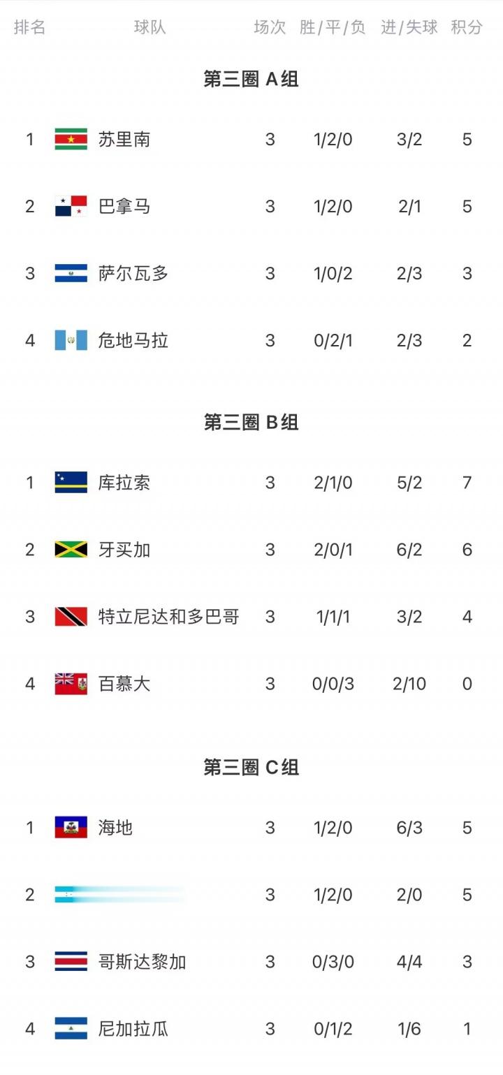 直播吧10月11日讯世界杯中北美洲及加勒比海区预选赛第三轮,苏里南第94分钟1-1绝平危地马拉,升至小组第一。