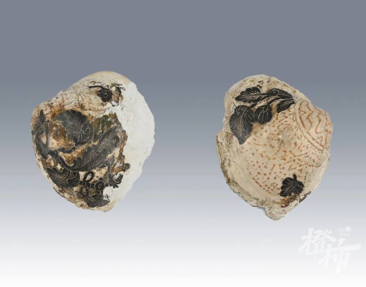 还有一只胭脂盒,用天然贝壳制作而成的,可能是女子董韶容生前的心爱之物。