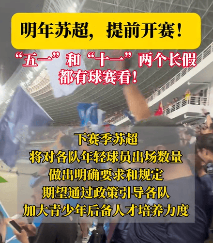 省体育局:明年苏超提前至五一开赛;将规定年轻球员出场