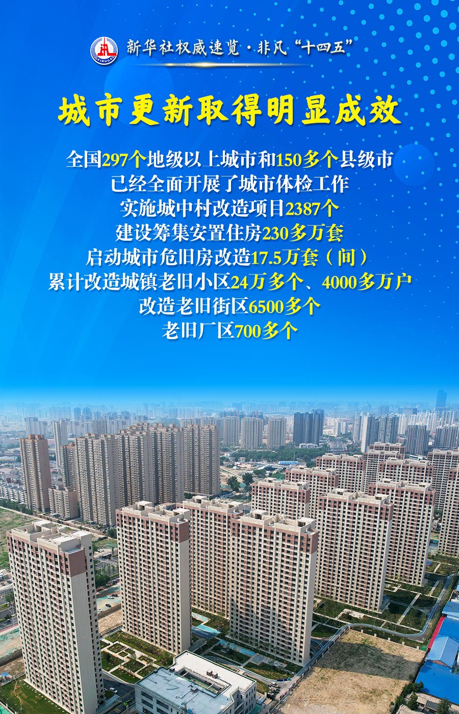 实施老旧小区改造,推动“好房子”建设,城市更新取得明显成效……“十四五”期间,全国住房城乡建设系统努力为经济社会发展作贡献,为民生改善办实事,不断满足人民群众日益增长的美好生活需要,取得了一系列实实在在的新成就。跟随海报,一起了解。